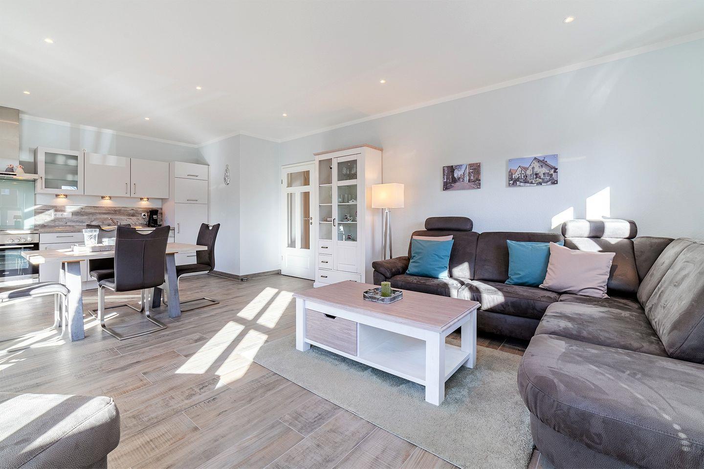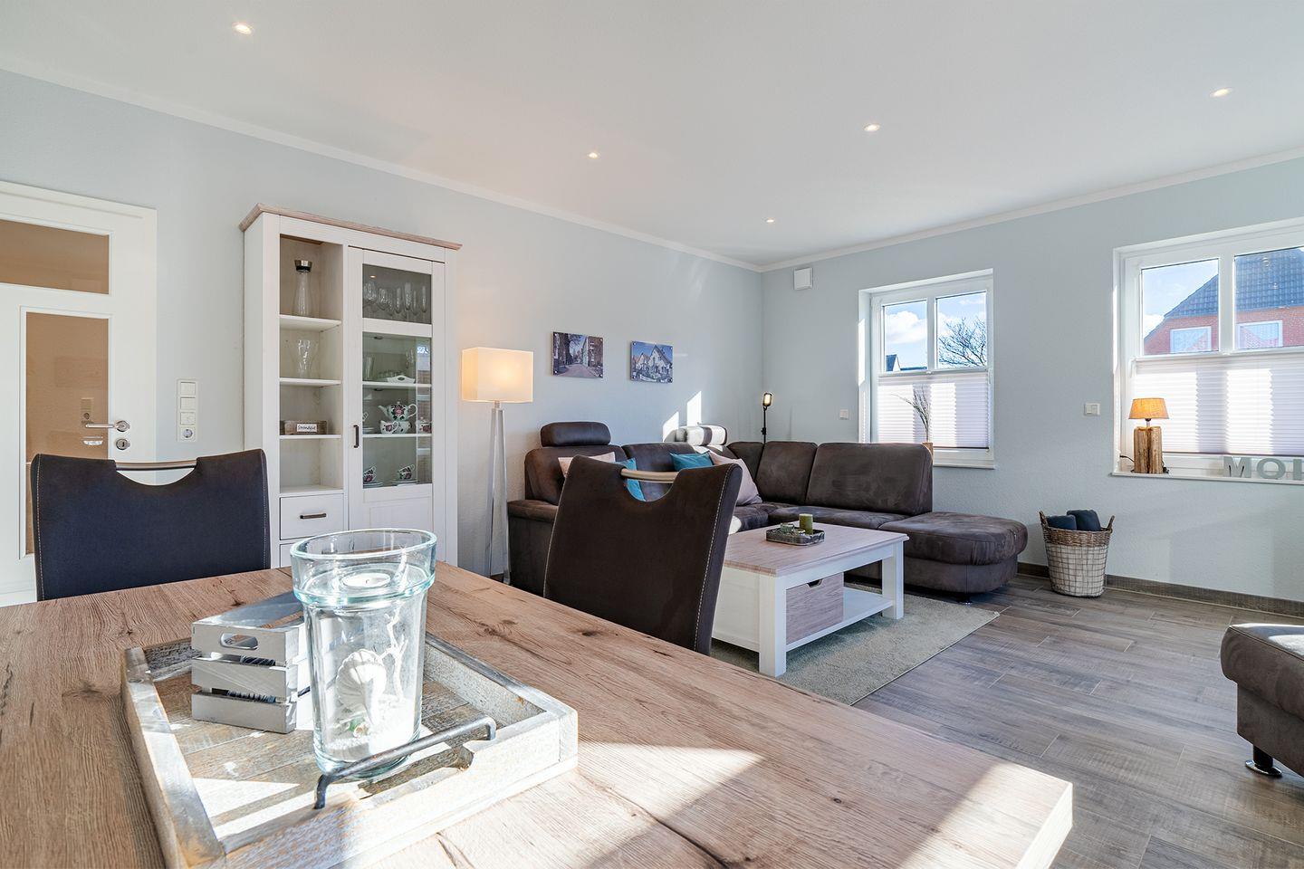 Die "Küstenkoje" ist eine liebevoll eingerichtete Ferienwohnung in Greetsiel, nur wenige Minuten vom Deich und dem malerischen Hafen entfernt. Auf 60 qm bietet sie eine gemütliche Atmosphäre, mit einem großzügigen Wohnraum, komplett ausgestatteter Küche, hochwertigem Boxspringbett im Schlafzimmer und einer bodengleichen Dusche im Badezimmer. Genießen Sie die Sonnenstunden auf der geschützten Terrasse und nutzen Sie den PKW-Stellplatz sowie den Fahrradraum mit Ladestation für E-Bikes.