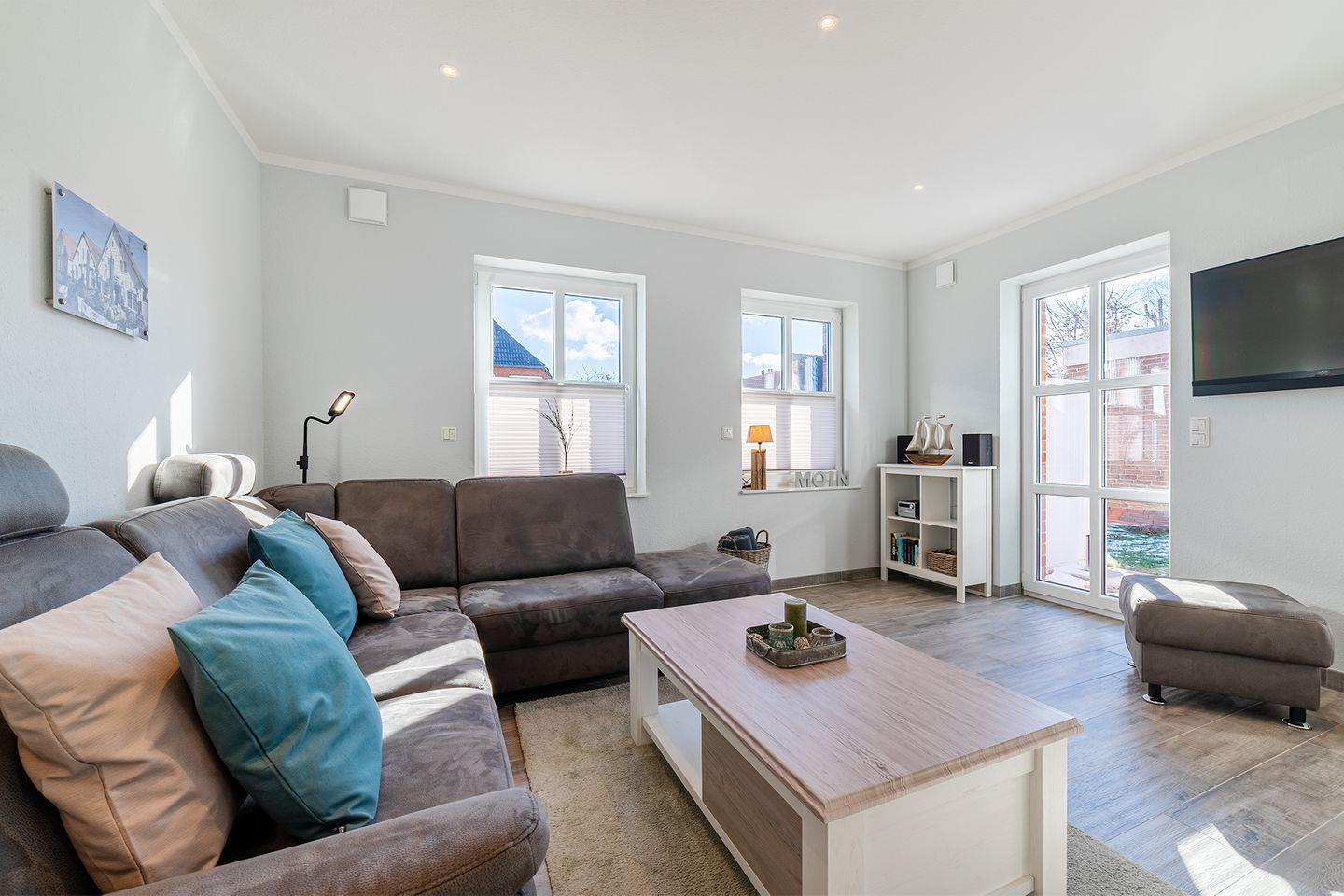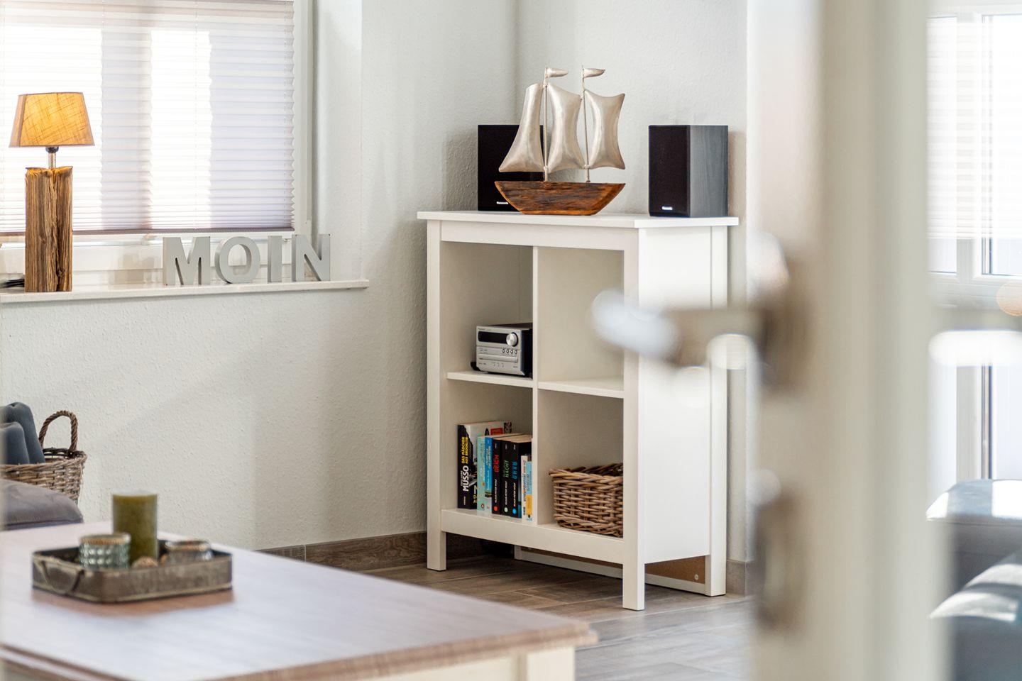 Die Farbgestaltung in den Farben der Küste vermittelt eine gemütliche und wohlige Atmosphäre.
