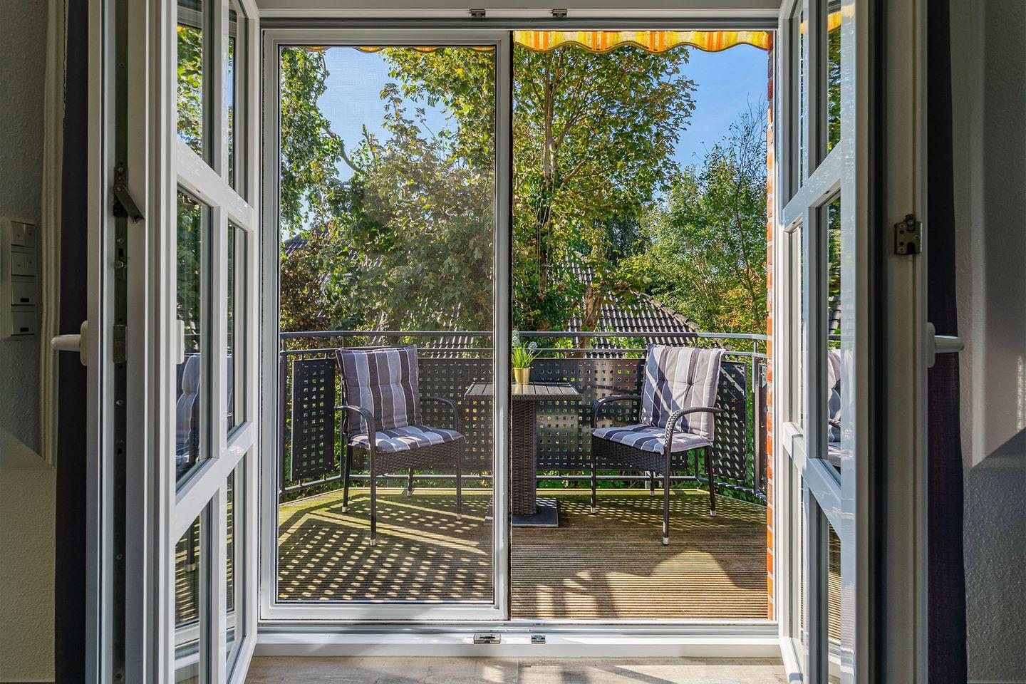 Bei schönem Wetter genießen Sie die Nordseeluft auf dem Balkon, der mit einer elektrischen Markise ausgestattet ist. Diese sorgt auf Wunsch für den perfekten Sonnenschutz.