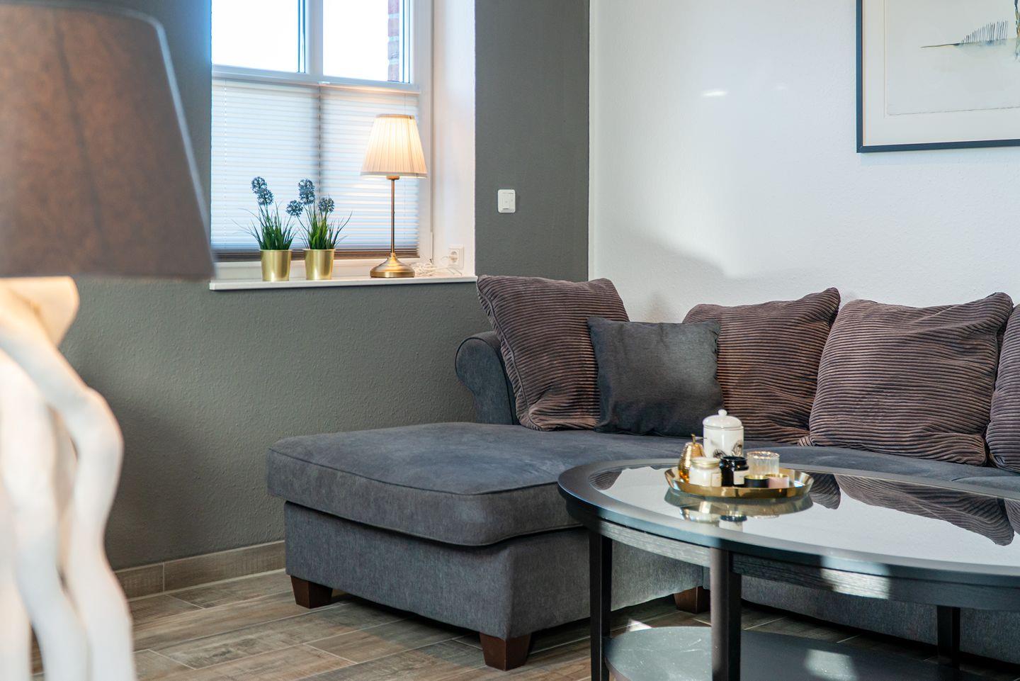 Moderne Ferienwohnung Nordseeperle in Greetsiel mit Deichblick und Nähe zum Ortskern, ideal für erholsame Tage an der Nordseeküste.