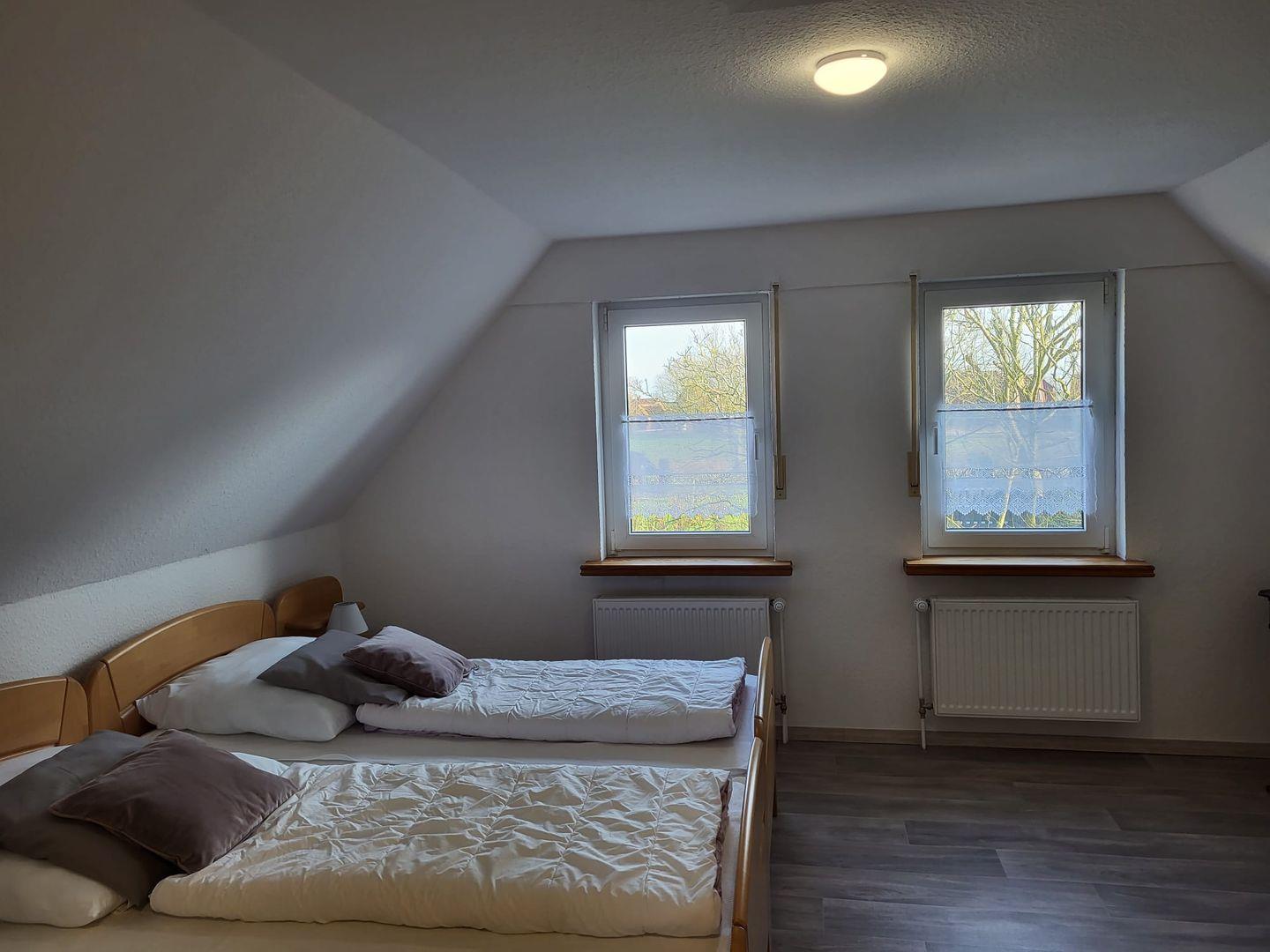 Vom Flur gelangen Sie in den Wohn-Essbereich mit Küche. Der großzügige Raum wirkt hell und freundlich. Die Balkenlage sorgt für Gemütlichkeit und Wärme. Genießen Sie auf dem Ledersofa und den 2 Sesseln gemütliche Abende, z. B. bei einem Fernsehabend mit einem Gläschen Wein. In der Küchenzeile steht alles bereit, um leckere Speisen zu kochen und dann am Esstisch mit der ganzen Familie oder mit Freunden zusammen zu essen. Klönen bei einer Tasse Ostfriesentee ist hier Pflicht. Vom Essbereich gelangen Sie auf die Terrasse, wo Sie die frische Nordseeluft und die Ruhe genießen können. Das Schlafzimmer im EG verfügt über ein Doppelbett und einen Kleiderschrank. Nebenan befindet sich das helle Duschbad. Ein kleiner Abstellraum rundet das Erdgeschoß ab. Die Treppe rauf finden Sie 2 weitere Schlafräume, eines mit Doppelbett und eines mit einem Einzelbett. Wenn Sie hier aus dem Fenster schauen, können Sie die Zwillingsmühlen entdecken. Auf dieser Etage finden Sie auch das zweite Duschbad. Alles Räume verfügen über Außenrollos. WLAN ist verfügbar! Ein Parkplatz gehört zum Haus. Das Ferienhaus Bella liegt sehr ruhig in einer Sackgasse. Es sind nur ca. 5 Gehminuten ins Zentrum.