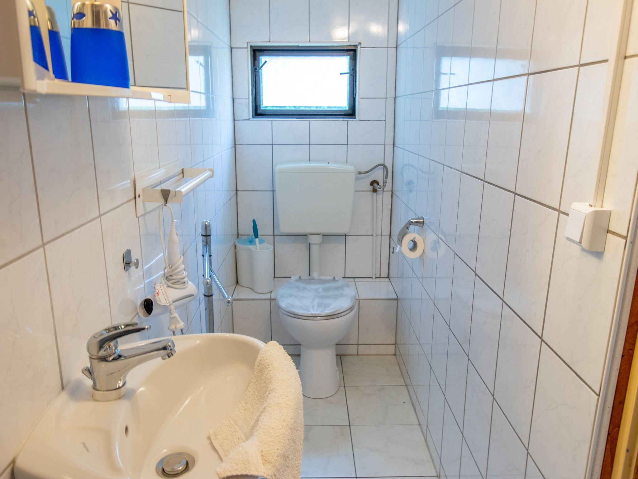 Das Sommerhäuschen 5 ist ein kleines Holzhaus für 2 Personen auf dem hinteren Teil des Gartengrundstücks. Das kombinierte Wohn- und Schlafzimmer verfügt über ein Doppelbett (160x200), eine Sitzecke mit Rattanmöbeln, einen Flachbild-TV sowie ein Radio. Der Küchenbereich mit einem kleinen Essplatz ist mit einer Pantry Küche, Kühlschrank, Kaffemaschine, Wasserkocher und Toaster ausgestattet. Im Badezimmer gibt es eine Dusche und eine Toilette mit Waschbecken.