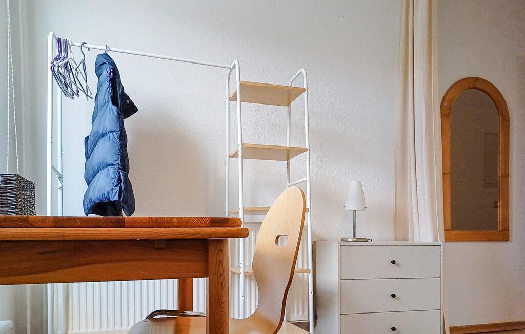Die 36 qm große Ferienwohnung ist geschmackvoll eingerichtet und ausgestattet mit einem Wohnraum (Polstermöbel mit Schlaffunktion als Aufbettungsmöglichkeit für die 3. Person, Flachbild-TV, Radio, Esstisch), einer offenen Küchenzeile (E-Herd mit Backofen, Kühlschrank mit Tiefkühlteil, diverse Küchenkleingeräte), einem Schlafraum mit 2 Einzelbetten (abgetrennt durch Vorhang) und einem Bad (DU/WC, Fön, Waschmaschine). Die Wohnung verfügt über einen Keller als Abstellmöglichkeit für mitgebrachte Fahrräder, Kinderbett sowie kostenfreies W-LAN. Öffentliche, teils kostenpflichtige Parkflächen befinden sich in der Nähe.