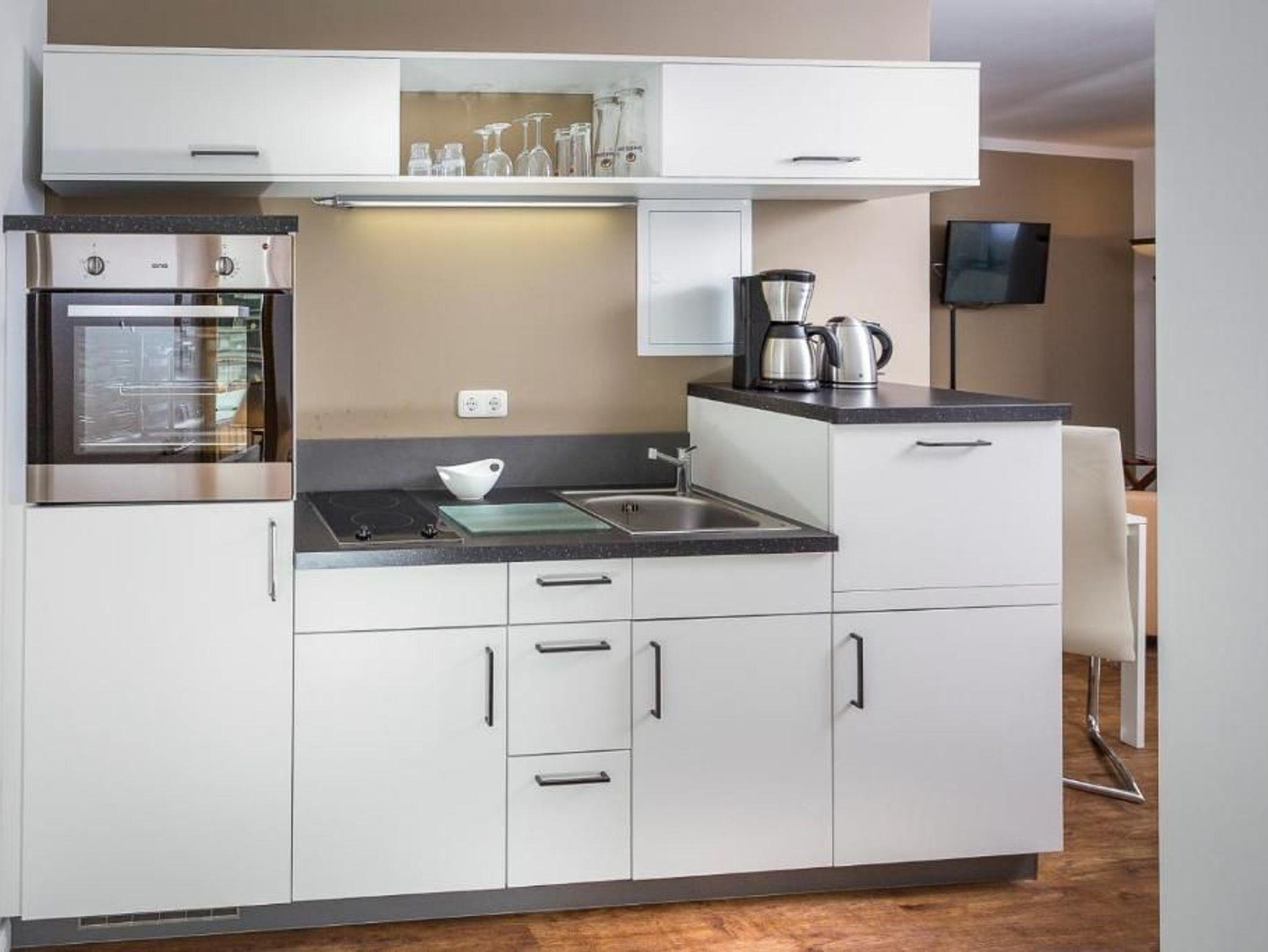 Eine voll ausgestattete Küche zur Selbstverpflegung