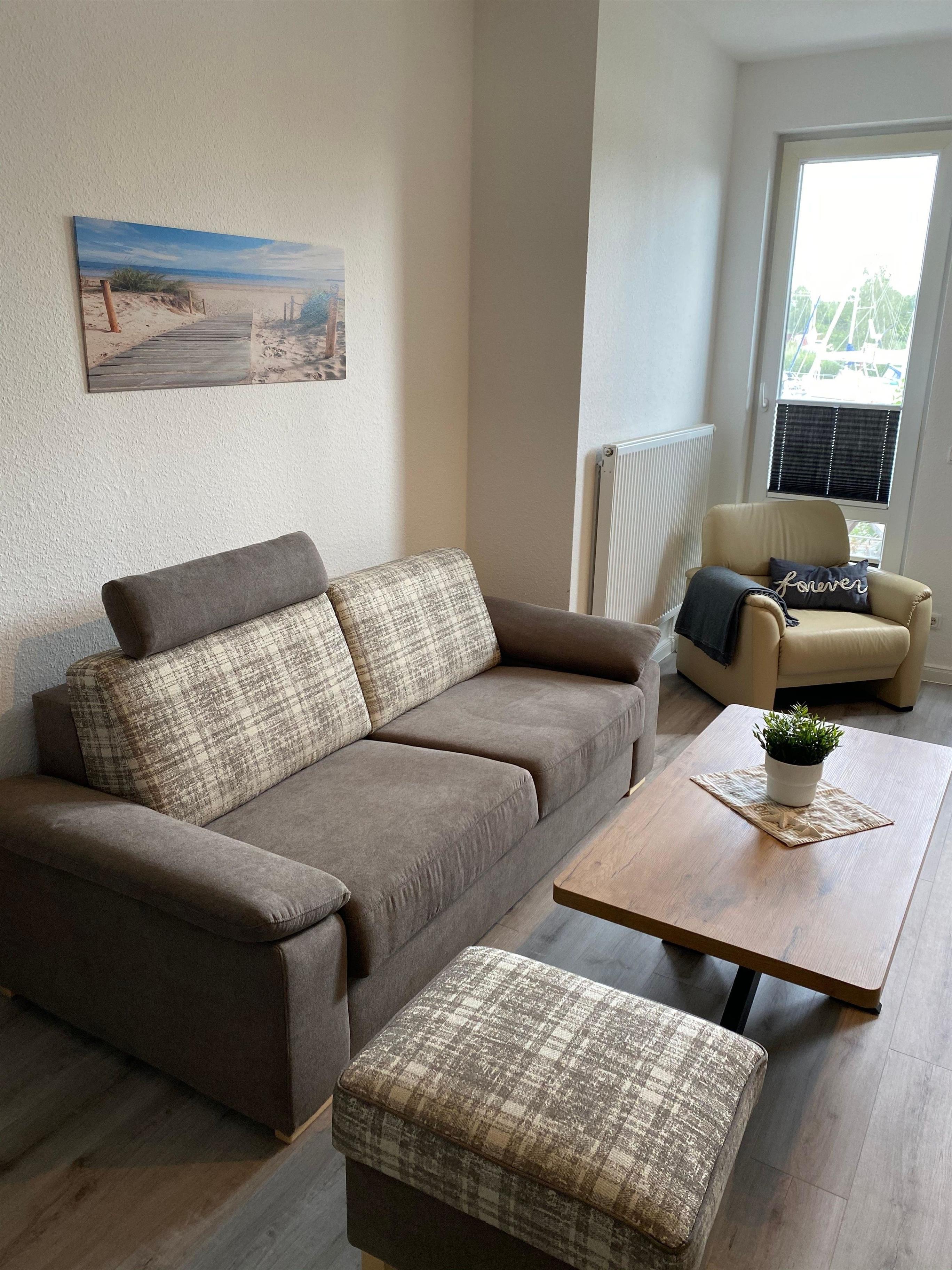 Helle Ferienwohnung in Greifswald mit Meerblick, Terrasse und kostenfreiem WLAN, ideal für einen entspannten Urlaub.