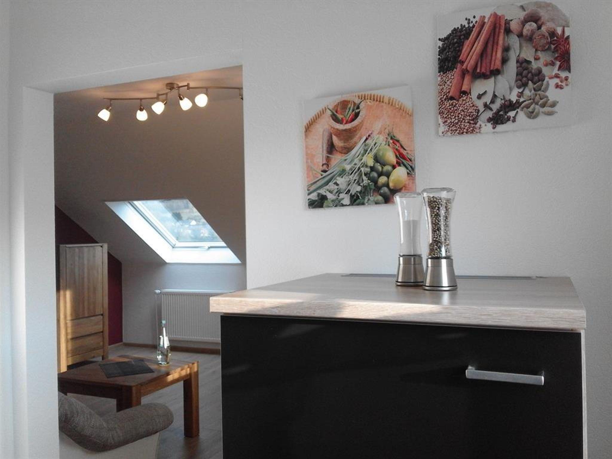 Die Ferienwohnung Äm ahlen Weh besitzt auf 45 qm 1 Schlafzimmer (Doppelbett), ein Bad mit Dusche & WC, eine separate, komplett eingerichtete Küche und einen großen Wohnraum mit Eßecke.