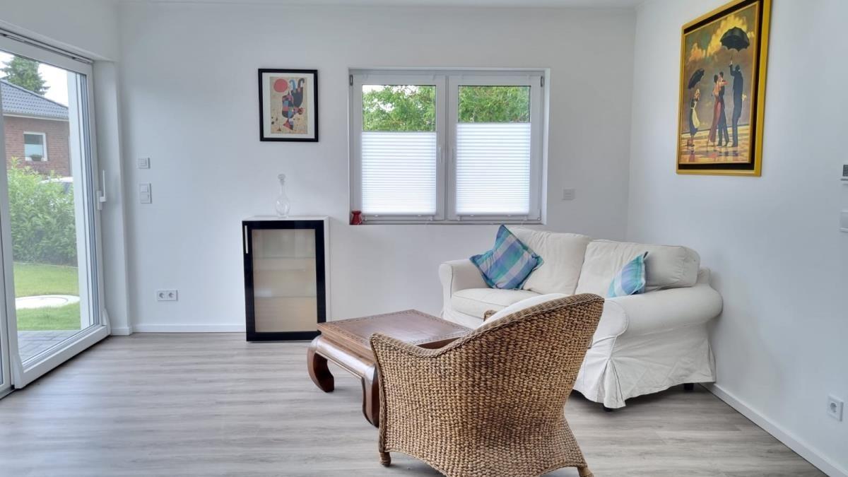 Die voll ausgestattete Küche lässt keine Kochwünsche offen: Sie finden einen Backofen mit Cerankochfeld, einen Kühlschrank mit Gefrierfach, einen Geschirrspüler sowie eine Kaffeemaschine und Wasserkocher – perfekt für Frühstück oder ein leckeres Abendessen. Die Terrasse mit Gartenanteil lädt zum Sonnen, Lesen oder gemütlichen Beisammensein ein und sorgt für entspannte Urlaubsmomente im Freien.