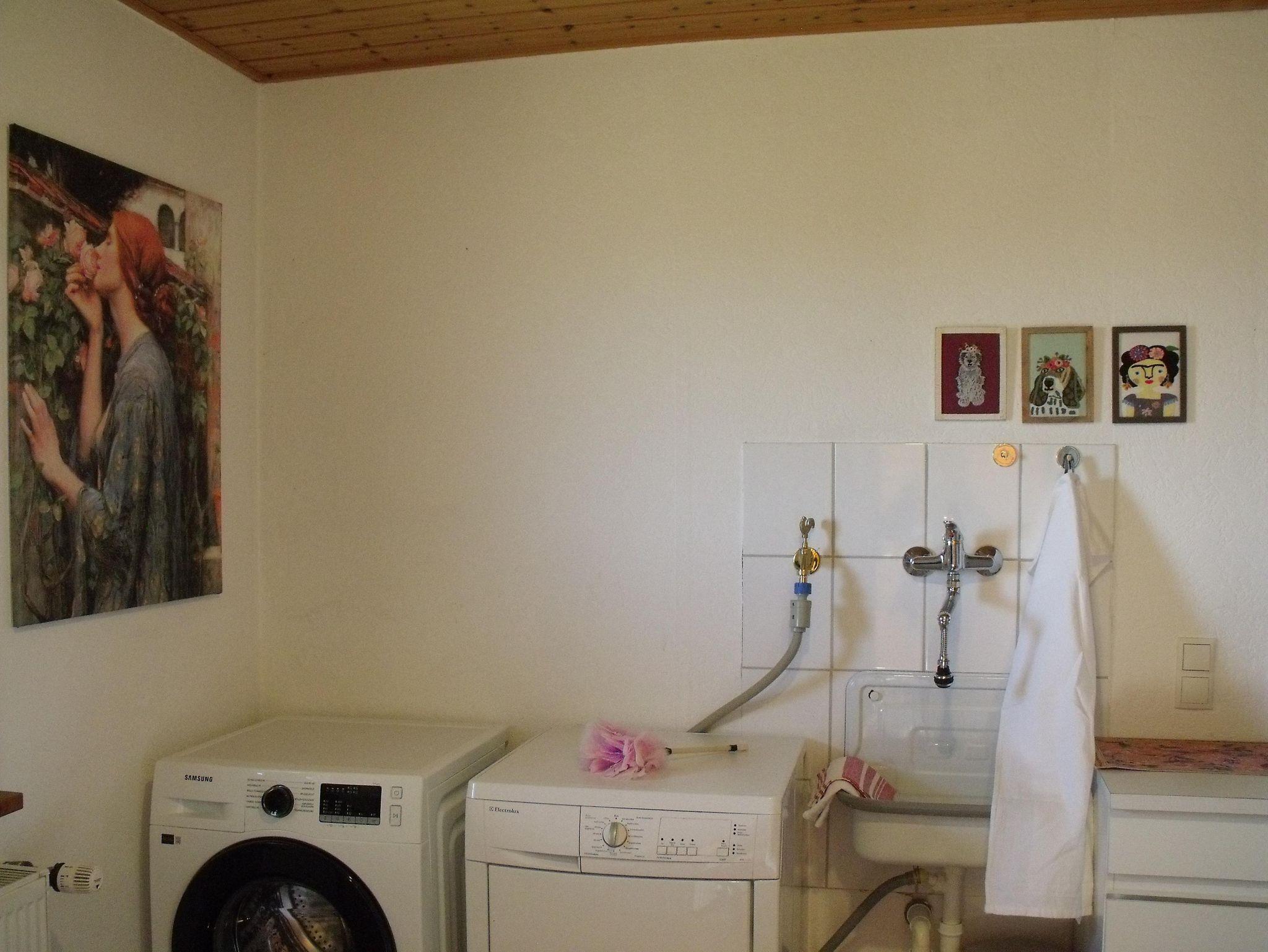 Im Hauswirtschaftsraum befinden sich Waschmaschine und Trockner.