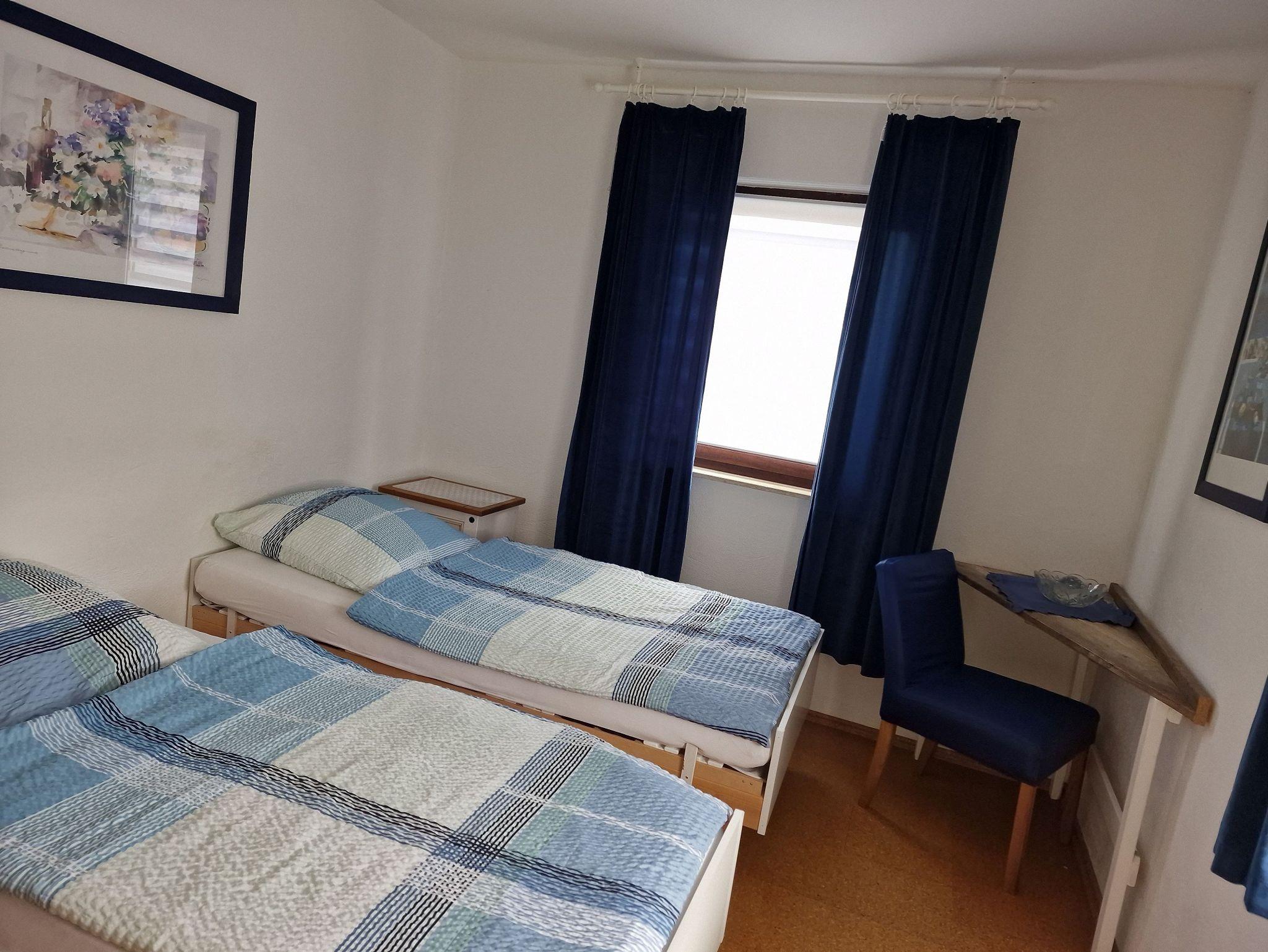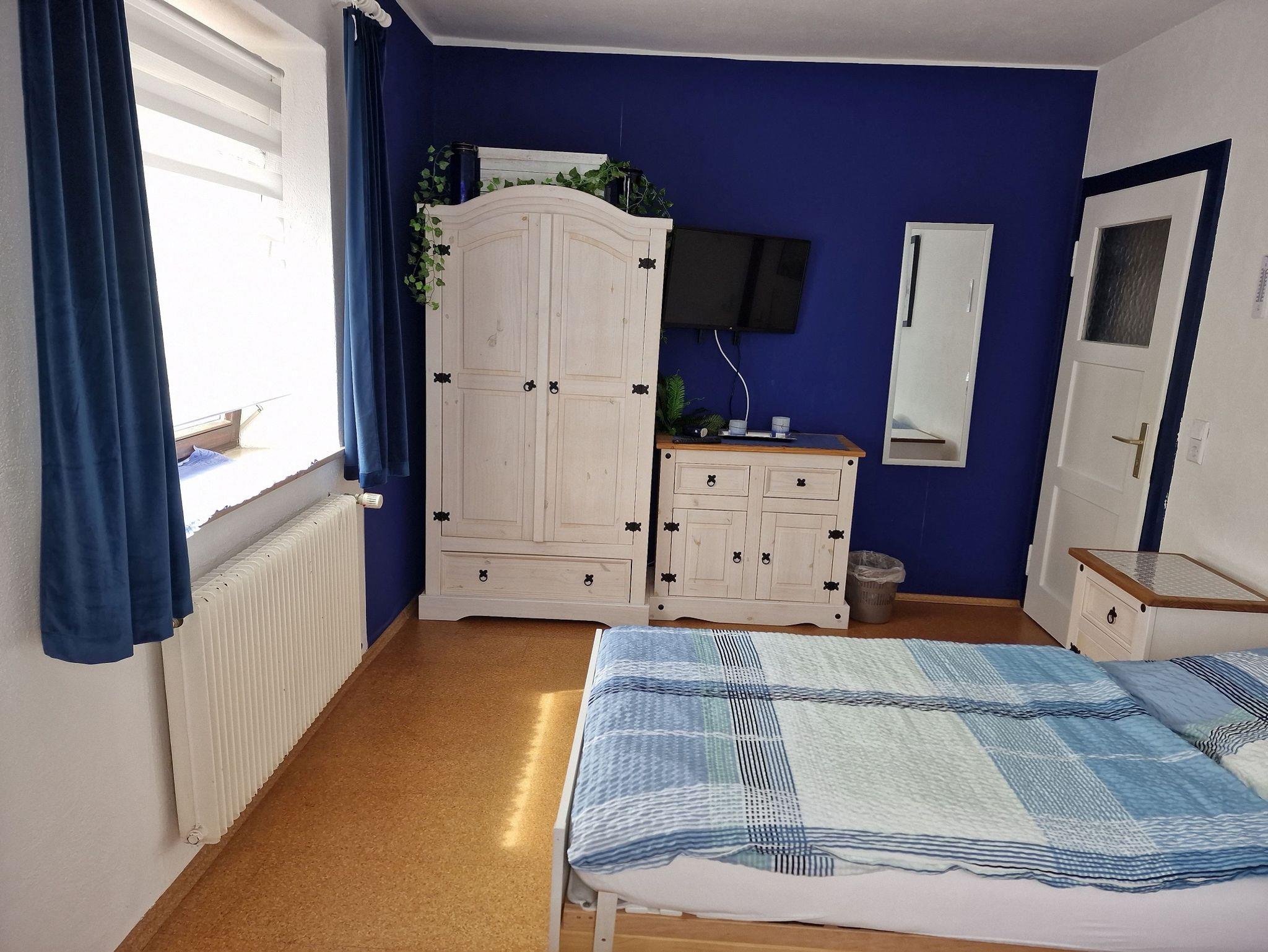 Das kleine aber sehr gemütliche Zimmer ist hell und mit allem ausgestattet was Sie für Ihren Aufenthalt benötigen. Ein Stockbett, mit guter Matratze (geeignet für Personen bis 140 kg), Bettwäsche, geräumiger Kleiderschrank, großer Spiegel, Nachttisch, ein kleines Regal, ein Fernsehgerät und ein Herrendiener bieten einen komfortablen Aufenthalt für Kinder oder auch Erwachsene. Alle Kinder die bisher zu Gast waren freuten sich sehr über das Stockbett mit etlichen Spielmöglichkeiten.