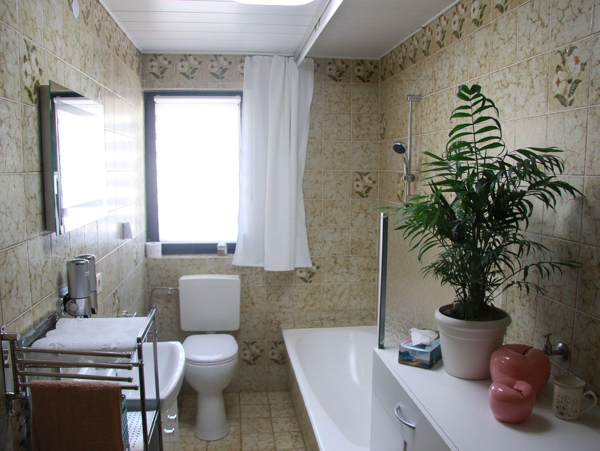 besteht aus WC und Badewanne, mit einem Duschvorhang, einem nicht beschlagenden Spiegel, sowie Seifen- und Desinfektionsspender, eine Waschmaschine mit Waschmittel und Weichspüler.