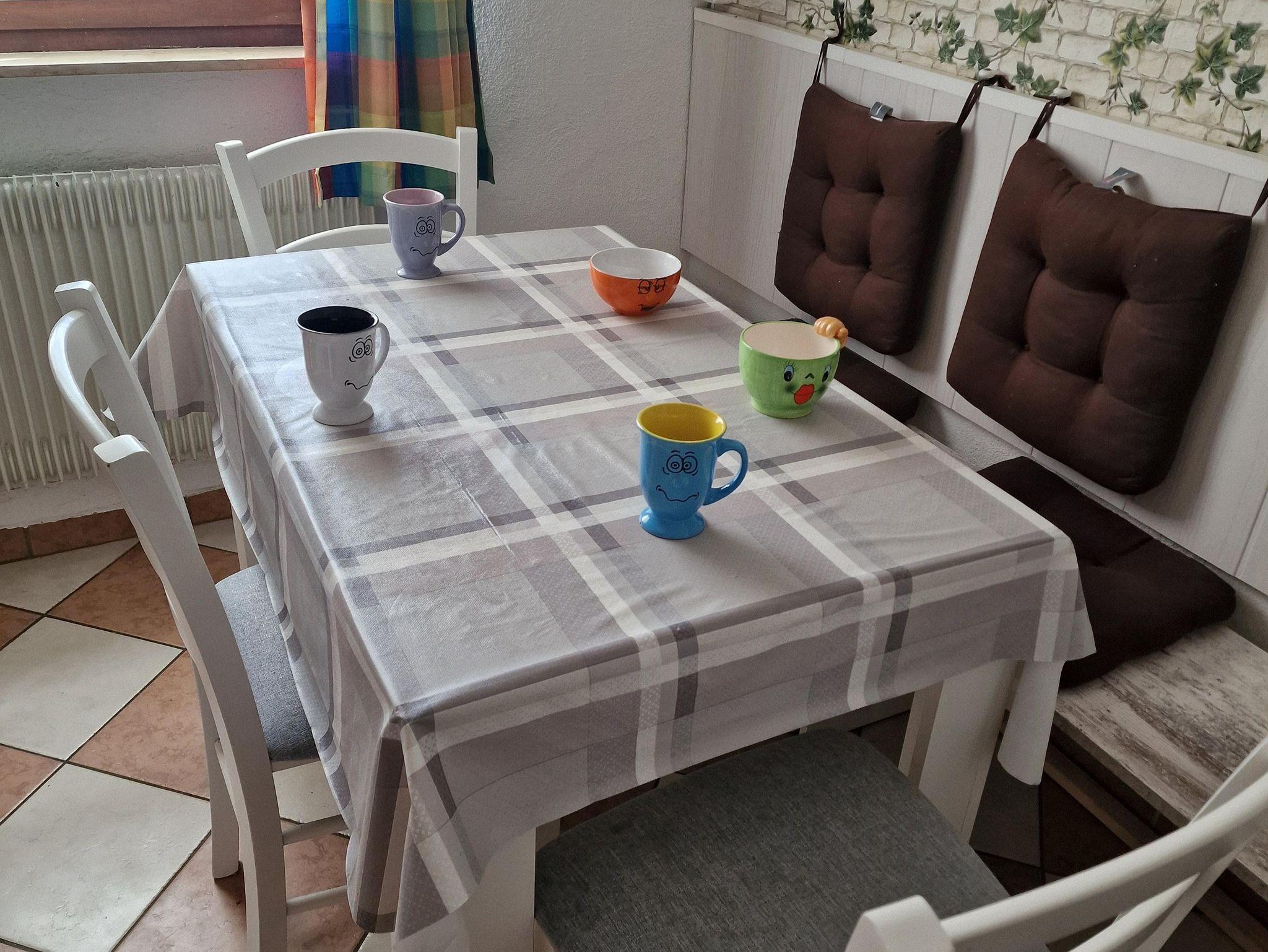 Am gemütlichen Essplatz können bis zu 7 Personen Platz finden, auch kann hier noch ein Kinderhochstuhl aufgestellt werden. Wenn für kleine Stubsnasen eine Erhöhung benötigt wird bitte anfragen.