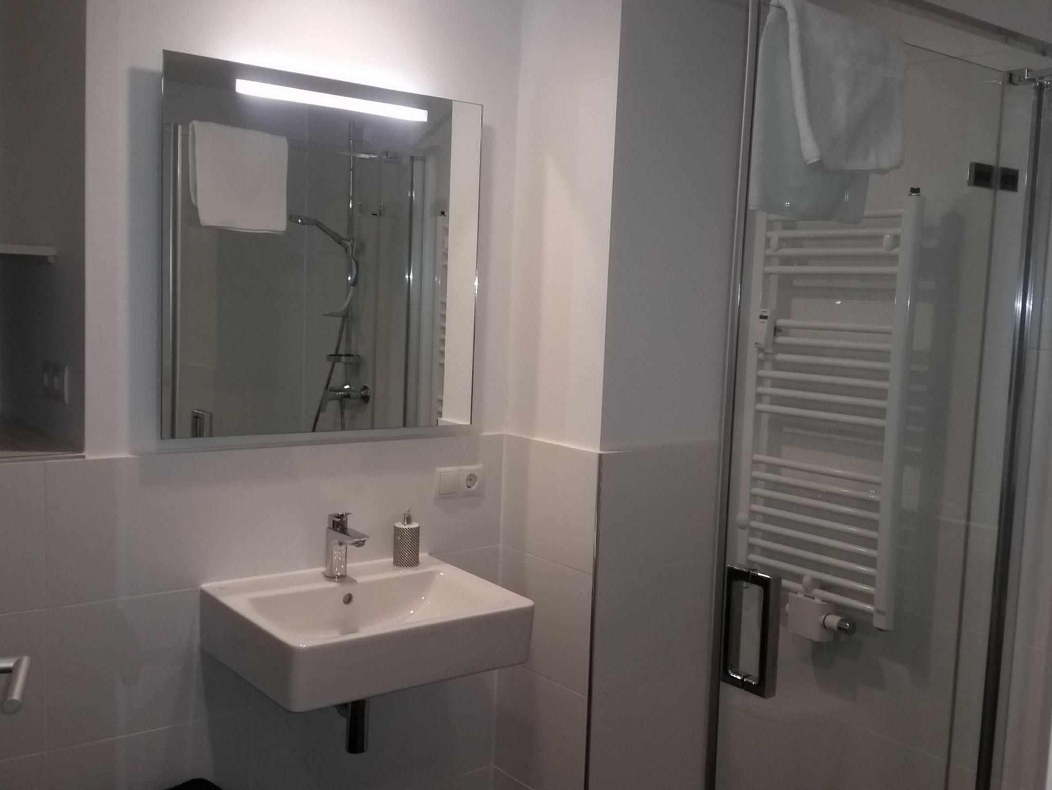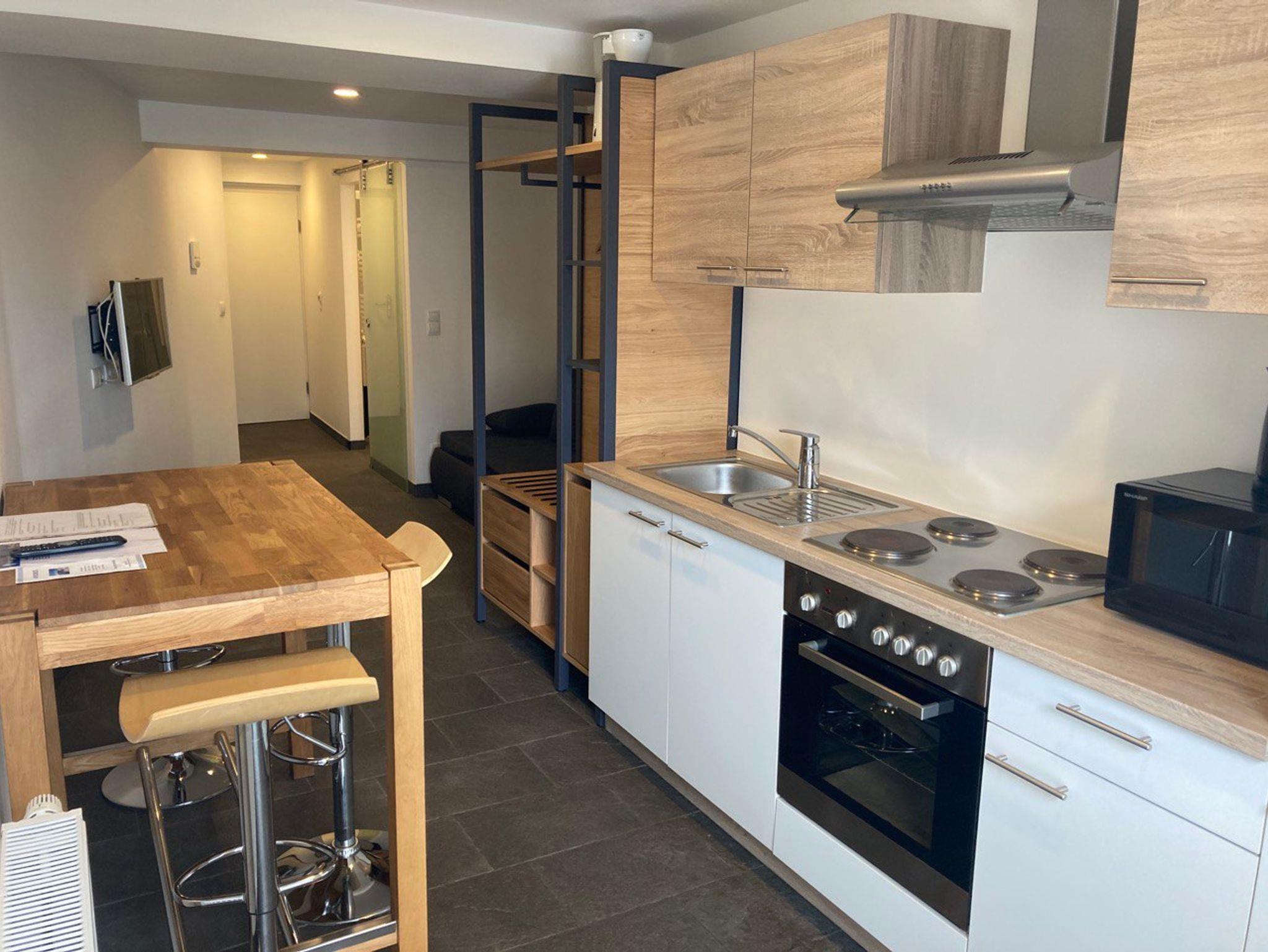 Die Ferienwohnung ist modern und hochwertig ausgestattet. Das 43qm große Appartement hat ein Schlafzimmer. Dieses ist mit einem französischen Bett und einem Einzelbett ausgestattet. Im Wohnzimmer ist ein Schlafsofa vorhanden, welches auf Anfrage als Einzel- oder Doppelbett zugebucht werden kann. Die Küche ist mit allen wichtigen Küchenutensilien ausgestattet. Auch eine Essecke befindet sich in der Wohn- /Essküche. Außerdem befindet sich ein Flachbild-TV im Wohnbereich. Beide Badezimmer sind mit Dusche, WC und einem Handtuchtrockner ausgestattet. Das zweite Badezimmer ist optional zusätzlich. Die gesamte Wohneinheit befindet sich im Erdgeschoß. Selbstverständlich sind Bettwäsche und Handtücher inklusive. Das WLAN ist kostenfrei verfügbar.