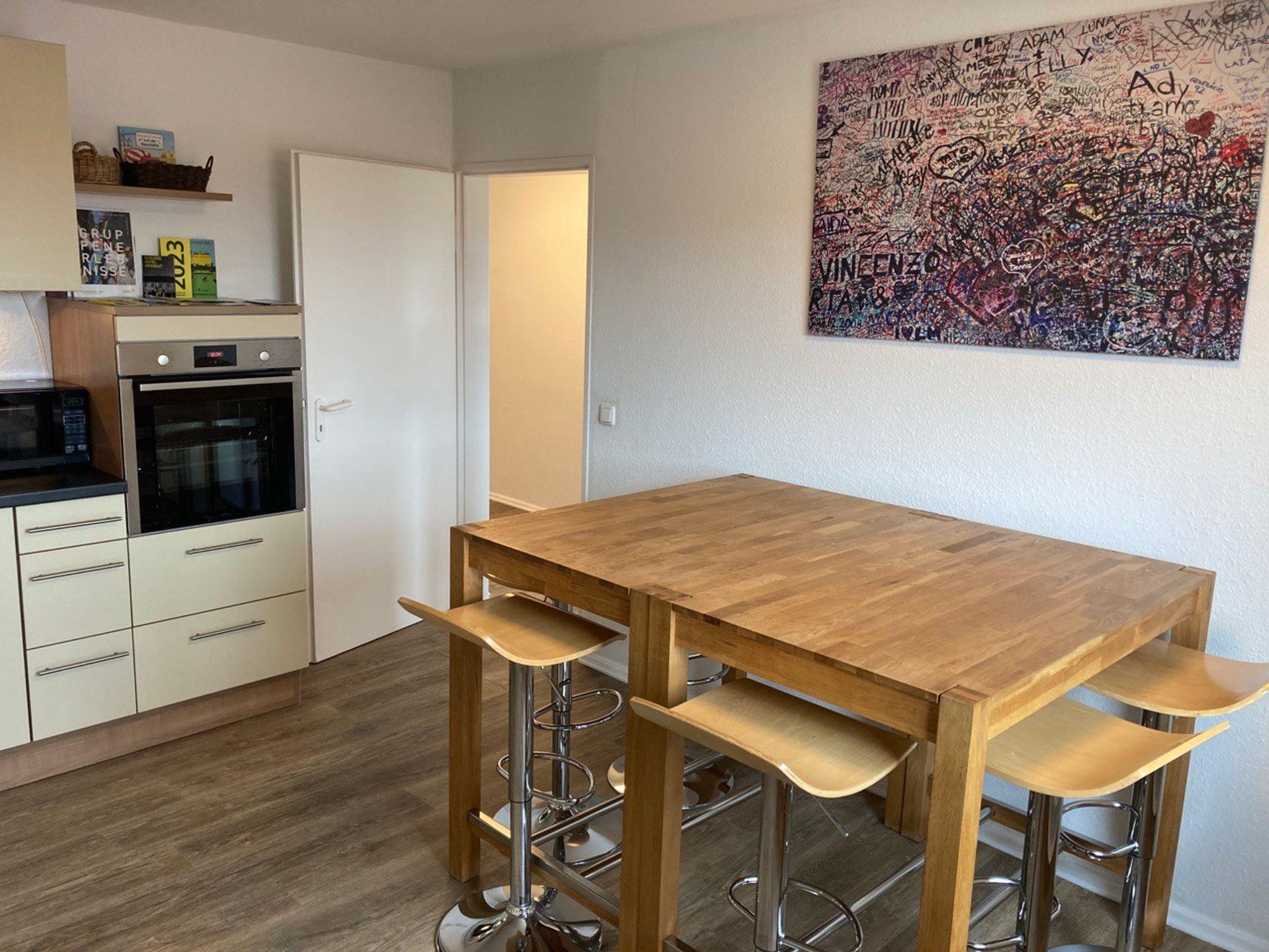 Das Penthouse ist modern und hochwertig ausgestattet. Auf großzügigen 125qm befinden sich vier Schlafzimmer. Die vier Schlafzimmer sind jeweils mit einem französischen Doppelbett, bei Bedarf mit weiteren Einzelbetten, einem Flachbild-TV sowie jeweils mit einem Einzelbett ausgestattet. Im Wohnbereich ist ein Lounge Sofa zum Verweilen und Chillen sowie ein Flachbild-TV vorhanden. Ein schöner, gemütlicher Balkon lädt zum Verweilen ein. Die Küche ist mit allen wichtigen Küchenutensilien ausgestattet. Auch zwei Esstische befinden sich in der Wohn- /Essküche. Das eine Badezimmer ist mit Dusche, Badewanne, WC, Waschmaschine und Kondenstrockner ausgestattet, das zweite Badezimmer ist mit großer, bodenebener Dusche sowie WC ausgestattet. Die gesamte Wohneinheit befindet sich im Obergeschoß. Selbstverständlich sind Bettwäsche und Handtücher inklusive. Das WLAN ist kostenfrei verfügbar.