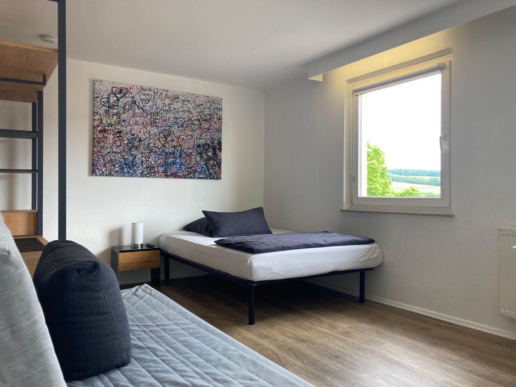 Das moderne, neu renovierte und voll ausgestattete PENTHOUSE mit Platz für 10 Personen befindet sich zwischen den Haßbergen, dem Steigerwald und dem Fränkischen Weinland, direkt am Main. Von hier aus können Sie das Schweinfurter Land in alle Richtungen erkunden und kennenlernen.