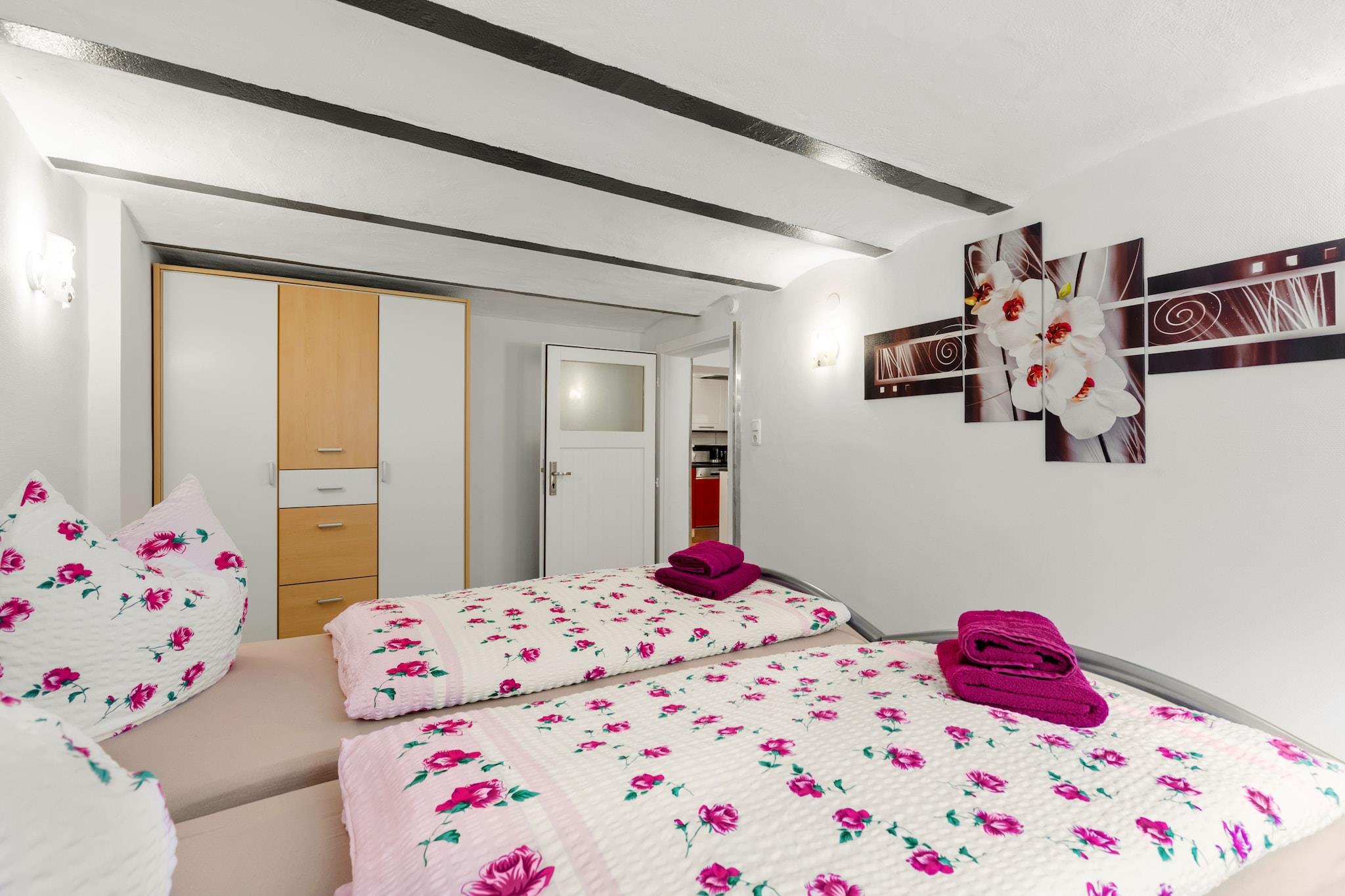 Diese wunderschön eingerichtete 2-Zimmer-Wohnung in Grevesmühlen bietet einen luxuriösen und ruhigen Rückzugsort für bis zu 4 Gäste, eingebettet in die Nähe des ruhigen Vielbecker Sees. Im Keller eines Einfamilienhauses gelegen, sorgt sie auch im Sommer für ein angenehm kühles Raumklima. Das geräumige Wohnzimmer verfügt über einen großen Flachbildfernseher, eine gemütliche Sitzecke und eine geschmackvolle Einrichtung, während die voll ausgestattete Küche zum gemeinsamen Kochen und Essen einlädt. Die Wohnung verfügt über eine private Terrasse, WLAN und Parkplätze auf dem Gelände. Geschäfte und eine Bäckerei sind nur einen kurzen Spaziergang entfernt. Der Charme der Region liegt in ihren malerischen Dörfern, üppigen Feldern und Radwegen, die bis zur Ostsee führen. Zu den nahegelegenen Sehenswürdigkeiten zählen das Freibad Ploggensee, Boltenhagen, Wismar, Lübeck und Schloss Bothmer. Tagesausflüge nach Schwerin oder in die Hansestadt Rostock bieten kulturelle Abwechslung.