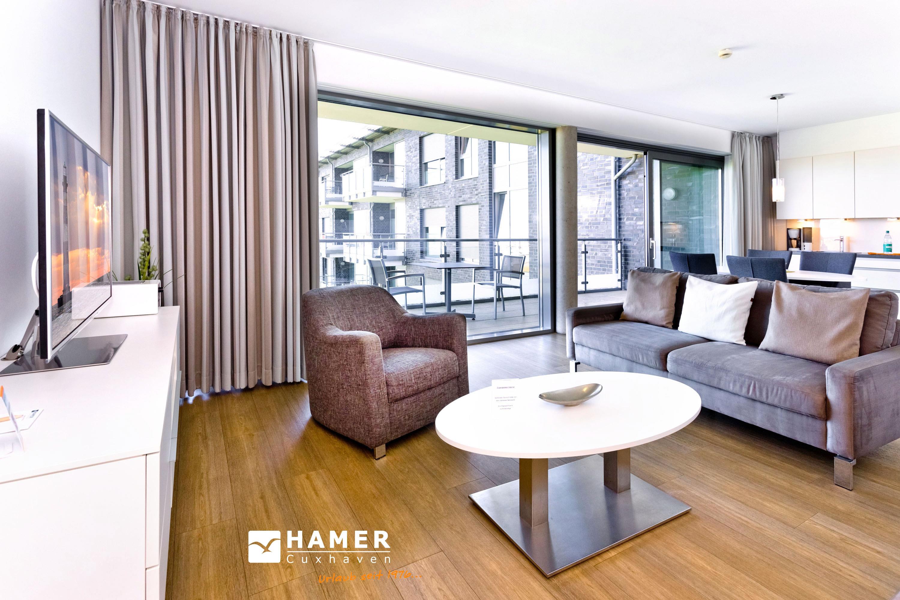 Moderne Ferienwohnung mit Meerblick, zwei Balkonen und komfortabler Ausstattung in Grimmershörn.