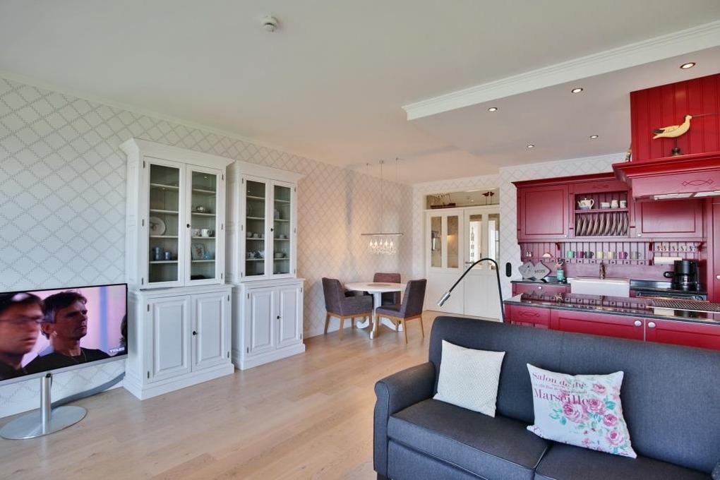 Sehr geschmackvoll und hochwertig bis 3 Pers. eingerichtete 3 Raum-Wohnung in der 4. Etage mit dem traumhaften Blick auf den Elbstrom. Wohnzimmer mit offener, voll ausgestatteter Küche, Esstisch, Balkon zur Seeseite, 1 Schlafzimmer mit Doppelbett u. TV, 1 Schlafzimmer mit Einzelbett, beide Schlafzimmer mit großem Südbalkon, 1 Bad/Du/Wc mit Fön, 1 Du/Wc, die gesamte Wohnung ist hochwertig mit Parkett und Fliesen ausgestattet, reservierter Pkw-Stellplatz auf dem Außengelände, Nichtraucher, keine Haustiere.