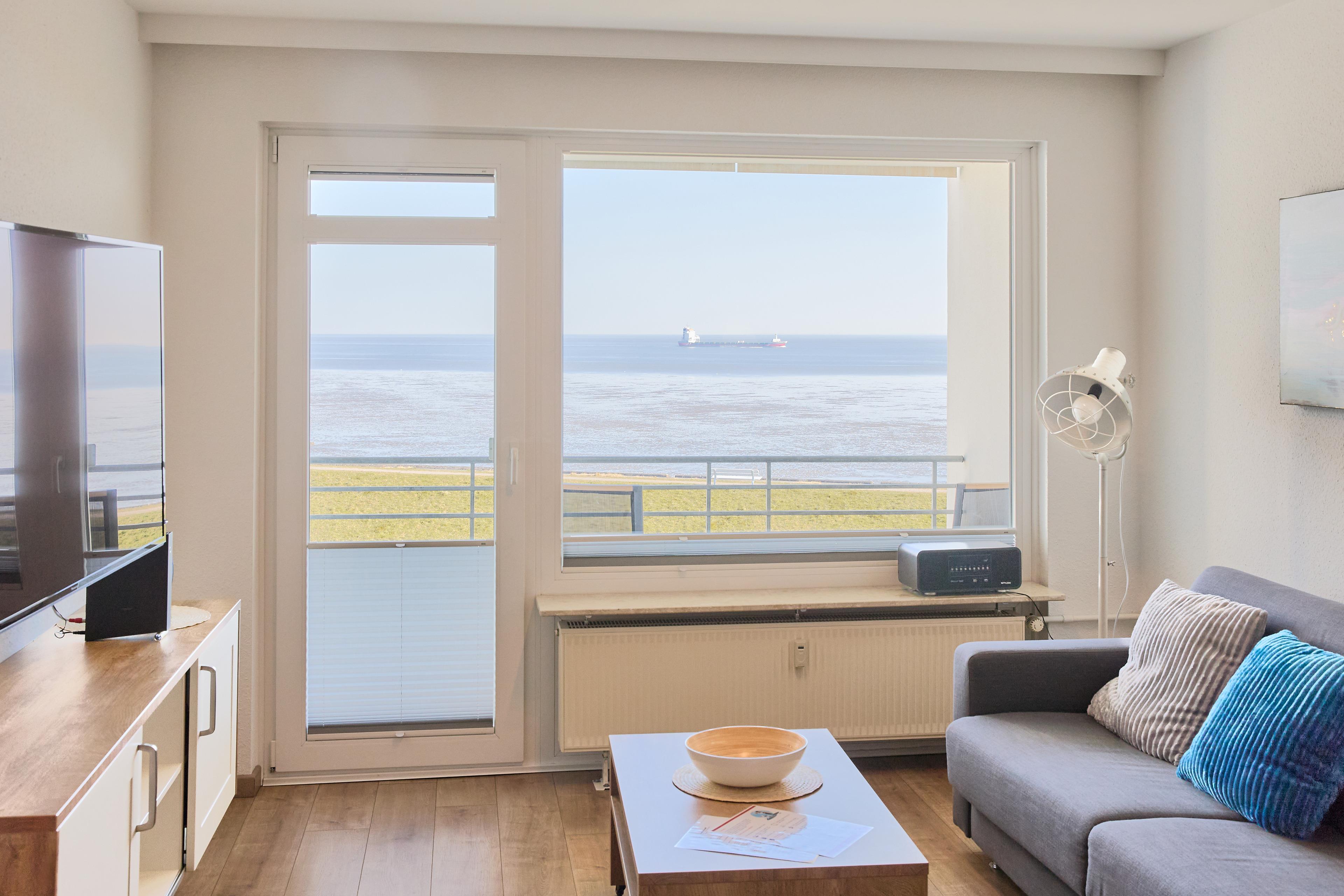 Willkommen in der Ferienwohnung Küstenblick – Ihrem maritimen Rückzugsort an der Grimmershörner Bucht im beliebten Haus Grimmerhörn. Die Lage direkt am Weltschifffahrtsweg ermöglicht Ausblicke auf Schiffe, Elbe und Kugelbake – ein idealer Ort für Gäste, die Ruhe, Weite und Meerblick schätzen. Der überdachte Balkon bietet zu jeder Jahreszeit einen geschützten Platz an der frischen Seeluft.