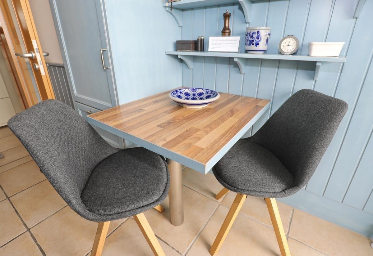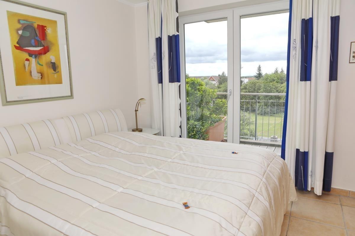 Die Wohnung verfügt über zwei gemütliche Schlafzimmer: eines mit Doppelbett (2 x 90 x 200 cm) und eines mit zwei Einzelbetten (je 90 x 200 cm), ideal für Familien oder Freunde. Die voll ausgestattete Küche bietet Cerankochfeld, Backofen mit Mikrowelle, Kühlschrank mit Gefrierfach, Kaffeemaschine, Toaster und Wasserkocher – von hier gelangen Sie direkt auf den Süd-Balkon.