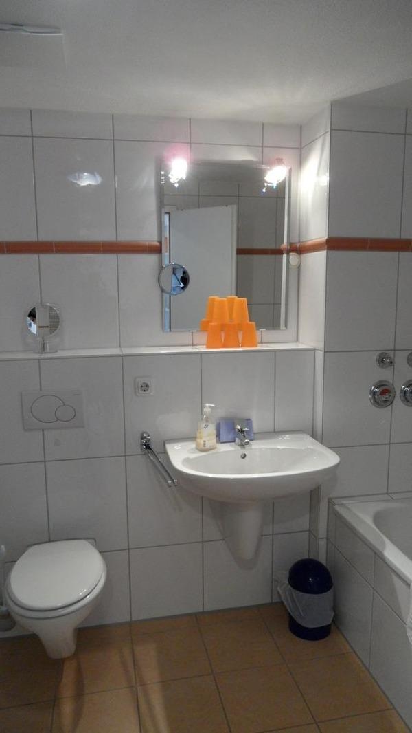 Das Badezimmer lädt mit Dusche, Badewanne und WC zum Entspannen ein. Zur Ausstattung gehören Kabel-TV, Radiowecker, kostenfreies WLAN*, barrierefreier Zugang sowie Waschmaschine, Trockner und sichere Fahrradabstellmöglichkeiten.