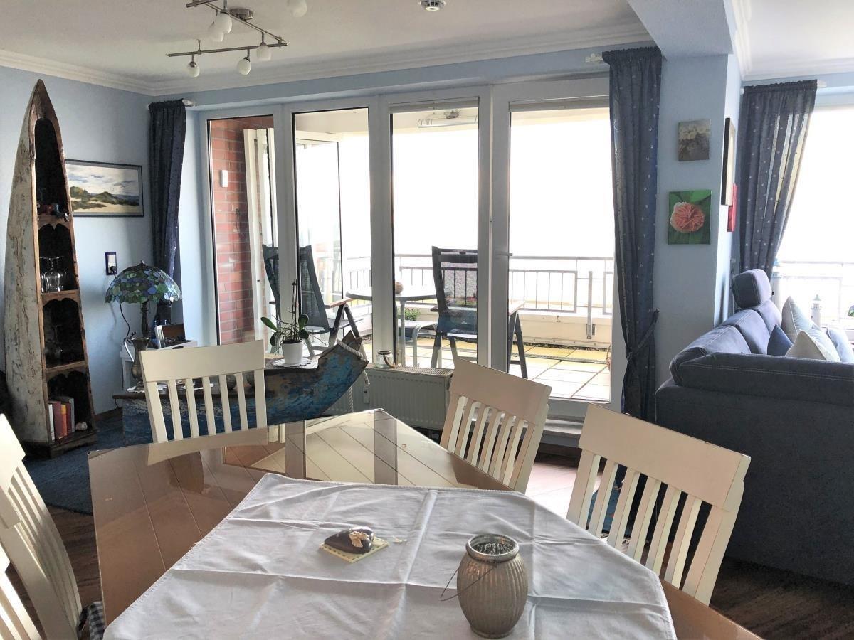 Willkommen in der Ferienwohnung Se 25 im Haus Seeterrassen – Ihrem perfekten Rückzugsort für einen erholsamen Urlaub mit Meerblick in Cuxhaven. Die geschmackvolle Wohnung in der 2. Etage bietet auf rund 79 m² Platz für entspannte Tage an der Nordsee. Der großzügige Balkon lädt dazu ein, die frische Seeluft zu genießen und den Blick über das Meer, das Bojenbad und die Grimmershörnbucht schweifen zu lassen – perfekt für Sonnenuntergänge oder das Beobachten des "Blanken Hans" bei Sturmflut.