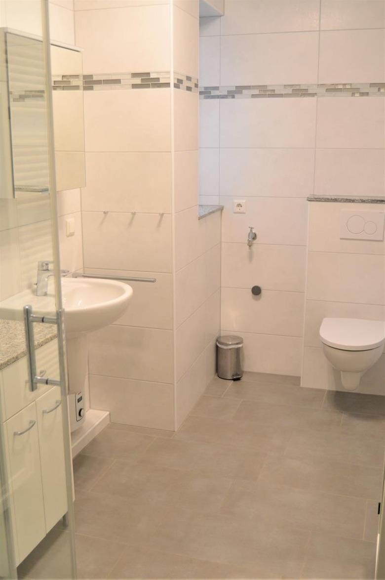 Das Badezimmer ist ausgestattet mit Dusche, WC und Föhn.Zur Wohnung gehören ein eigener PKW-Stellplatz sowie ein abschließbarer Fahrradraum. Kostenfreies WLAN ist ebenfalls vorhanden.