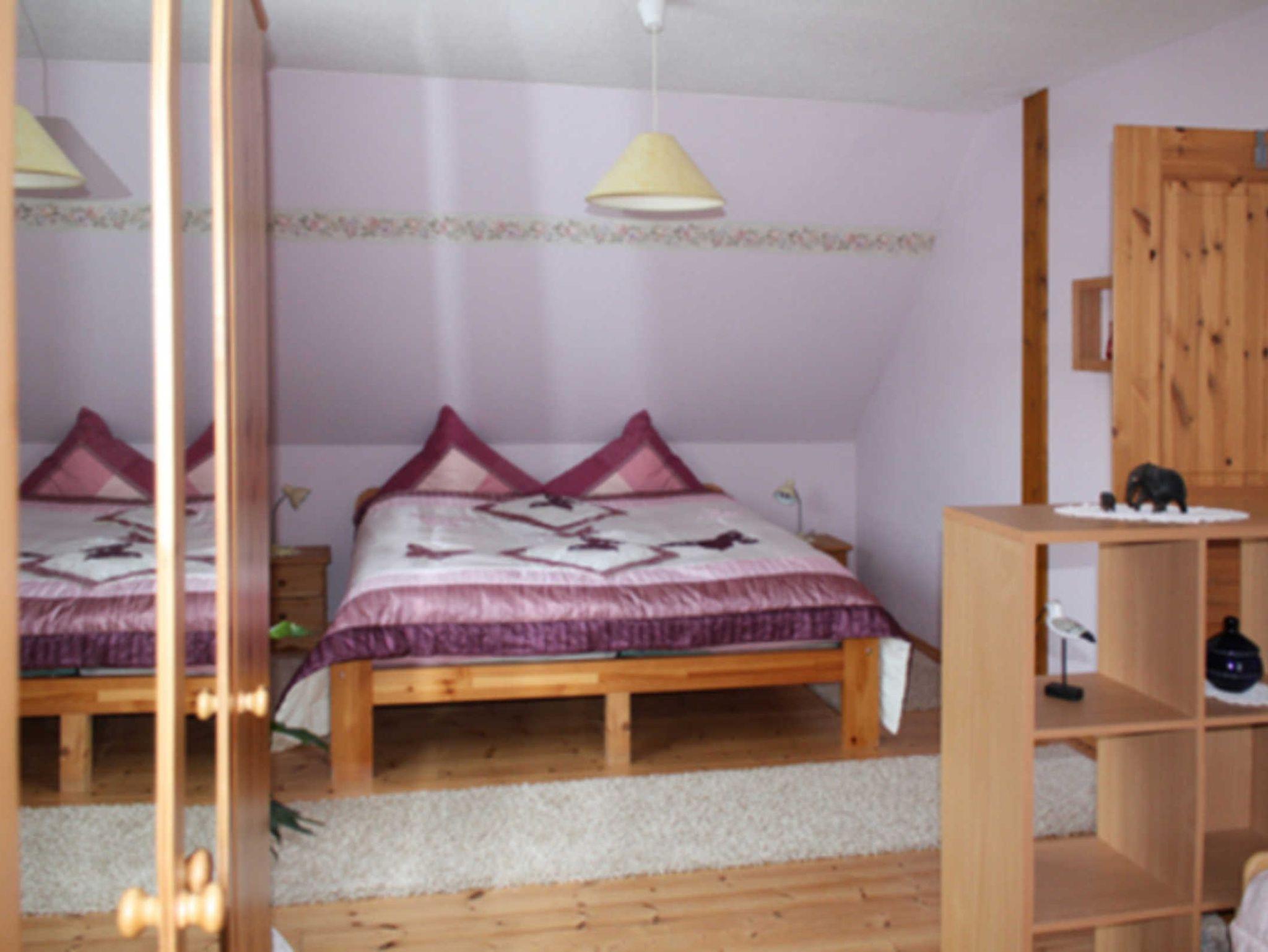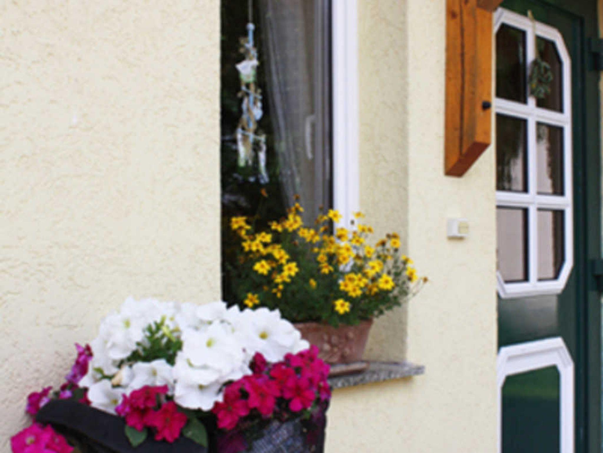Die Ferienwohnung hat einen separaten Eingang ( ca 78 m²groß ). Die Terrasse mit Blick in den Garten ist komplett überdacht .Man schaut direkt in den Garten mit angelegtem Teich.
