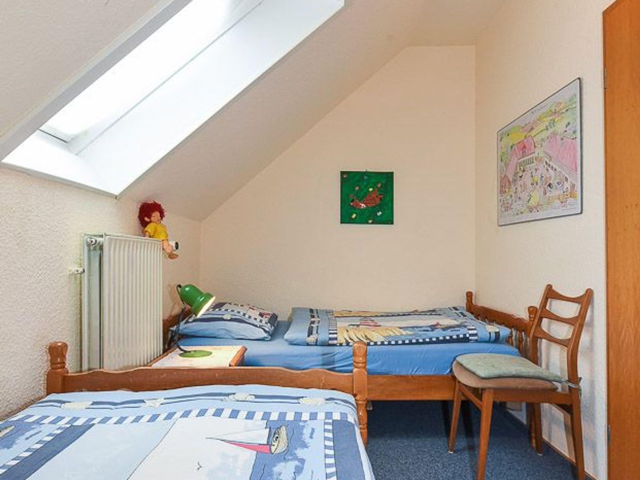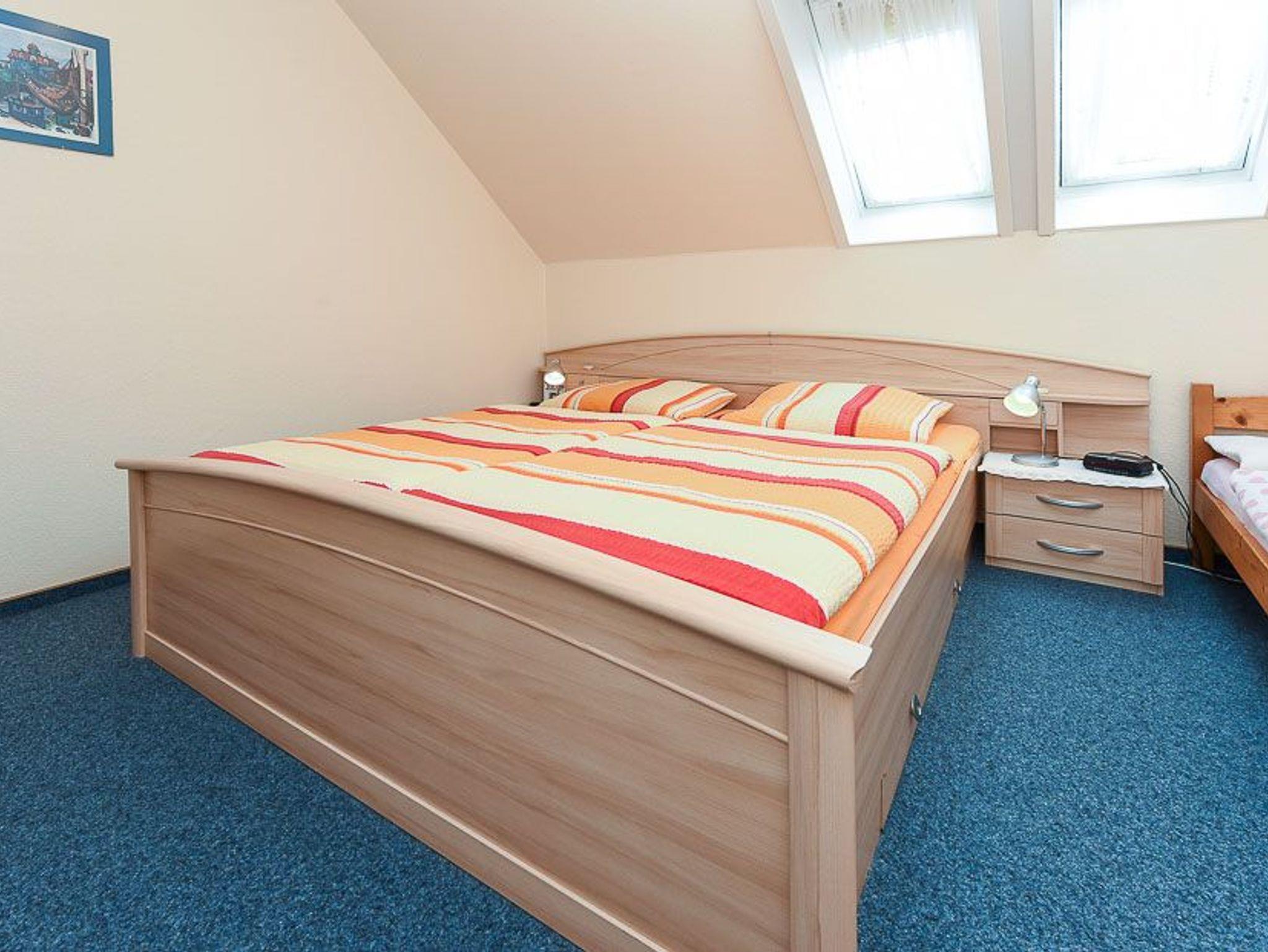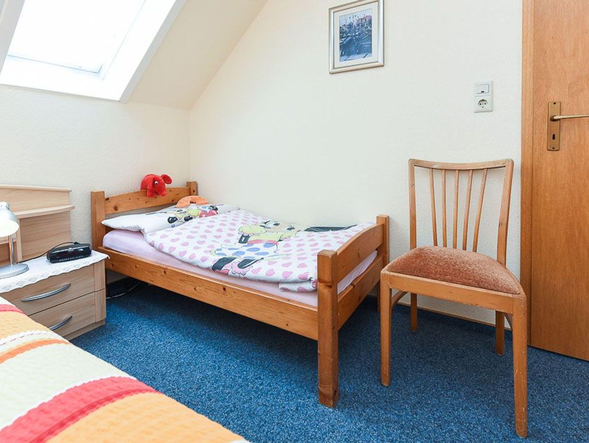 Größe ca. 50 Quadratmeter, Wohnraum mit integrierter Küche, Schlafzimmer, zweites separates, Schlafzimmer/Kinderzimmer, Badezimmer mit Dusche, Waschtisch und WC, Obergeschoss, optimal für 2 bis 5 Personen.