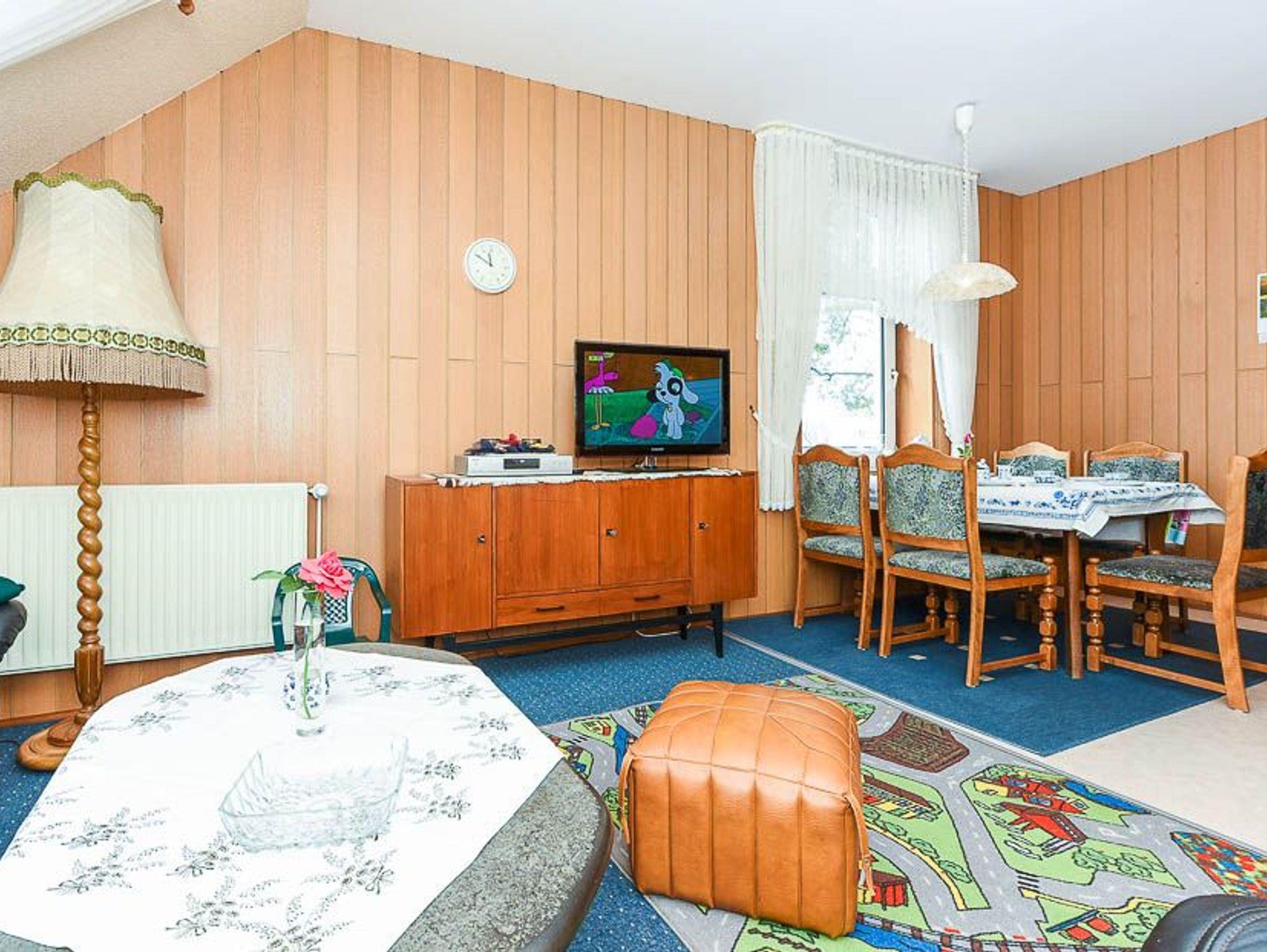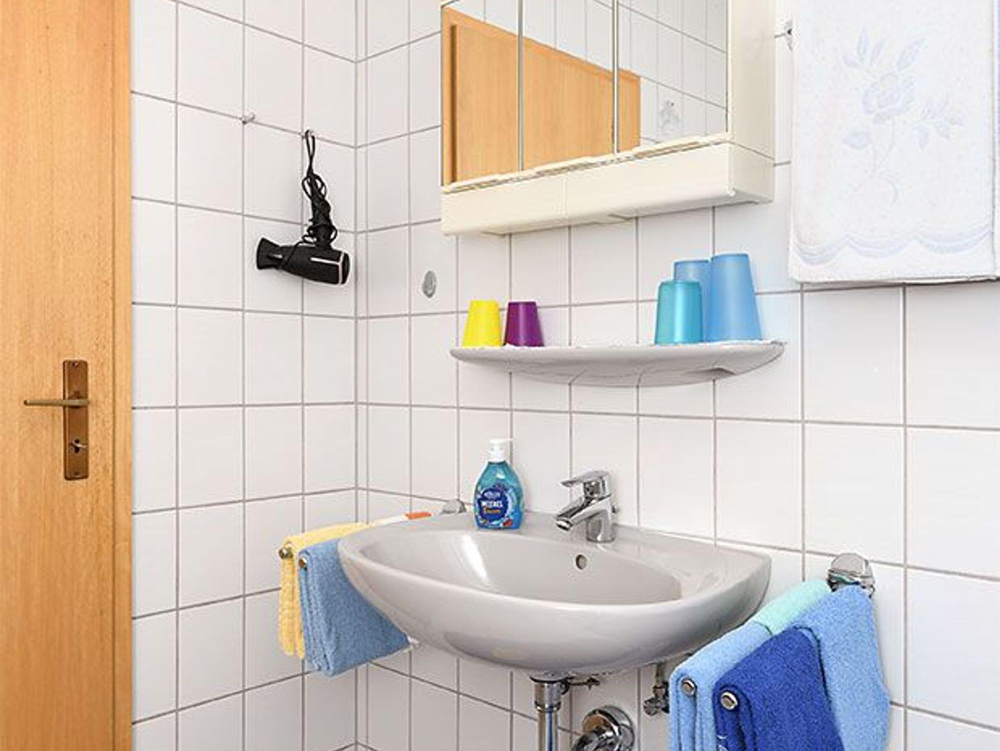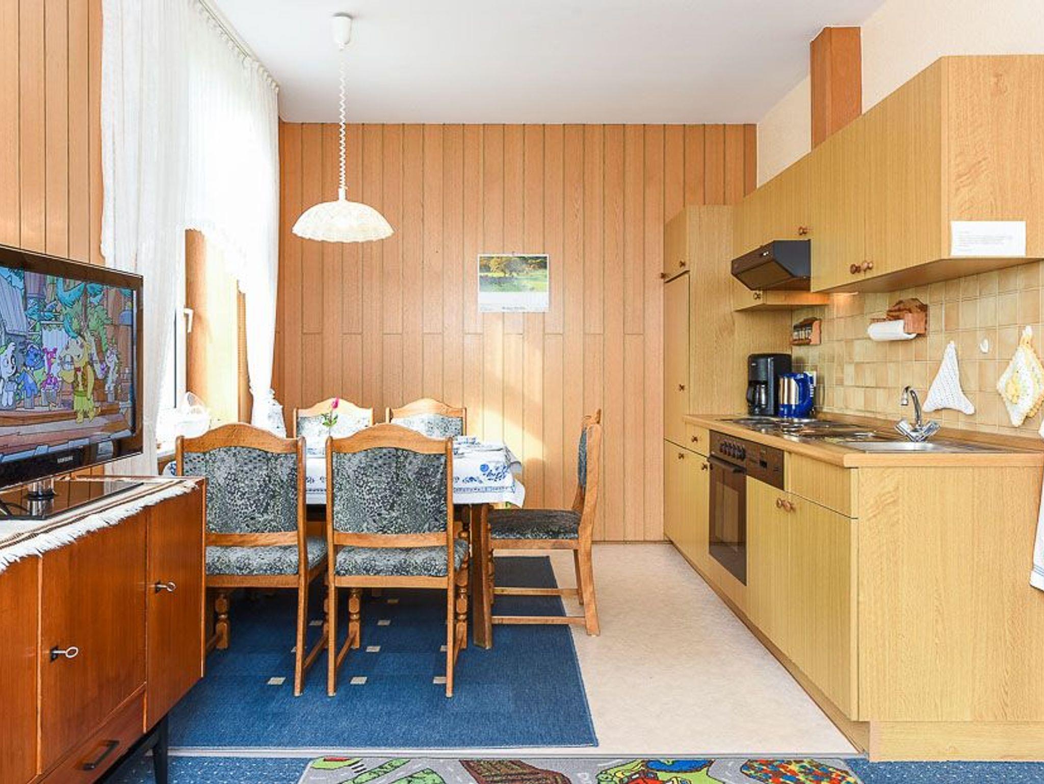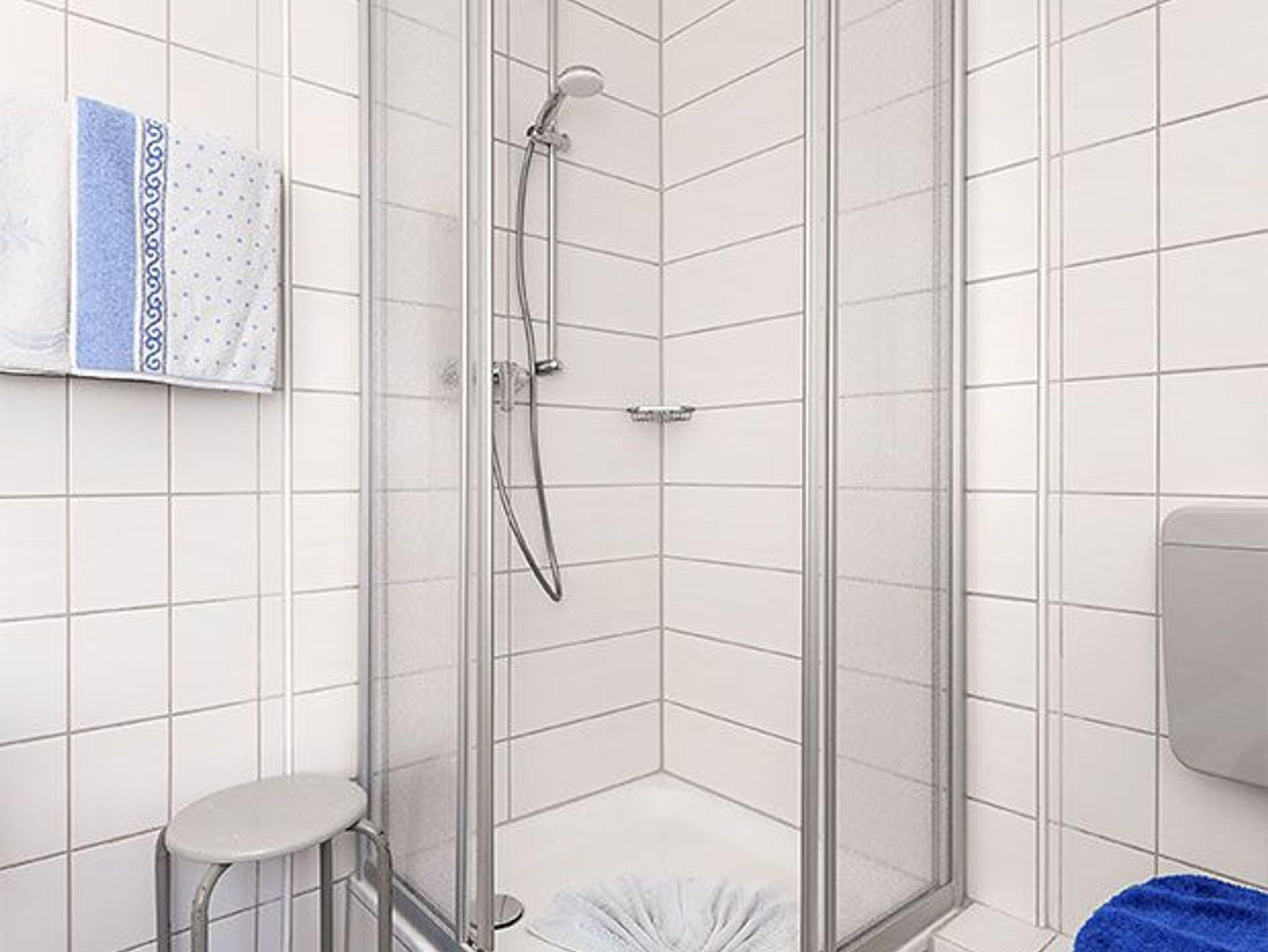 Größe ca. 50 Quadratmeter, Wohnraum mit integrierter Küche, Schlafzimmer, zweites separates, Schlafzimmer/Kinderzimmer, Badezimmer mit Dusche, Waschtisch und WC, Obergeschoss, optimal für 2 bis 5 Personen.