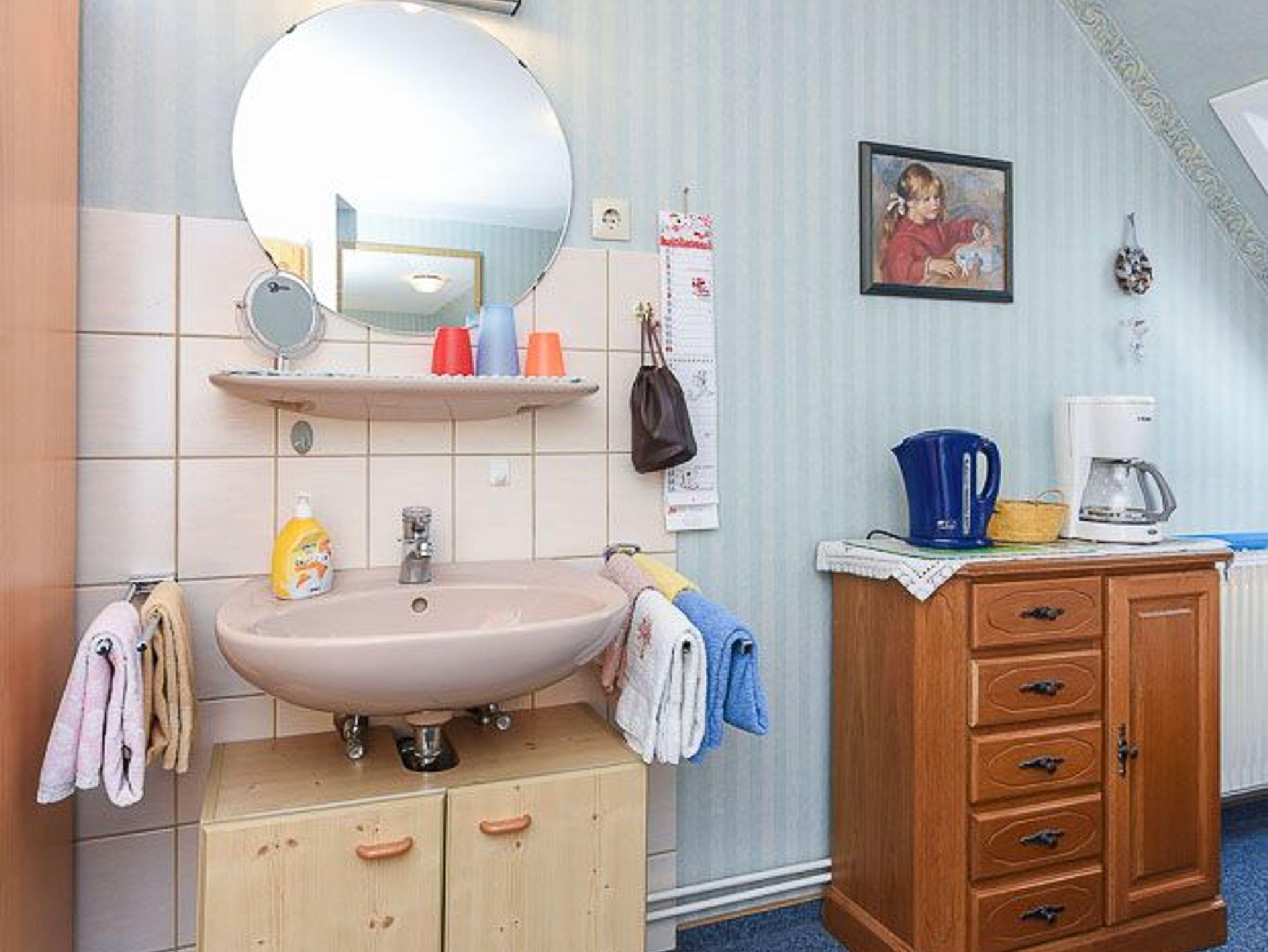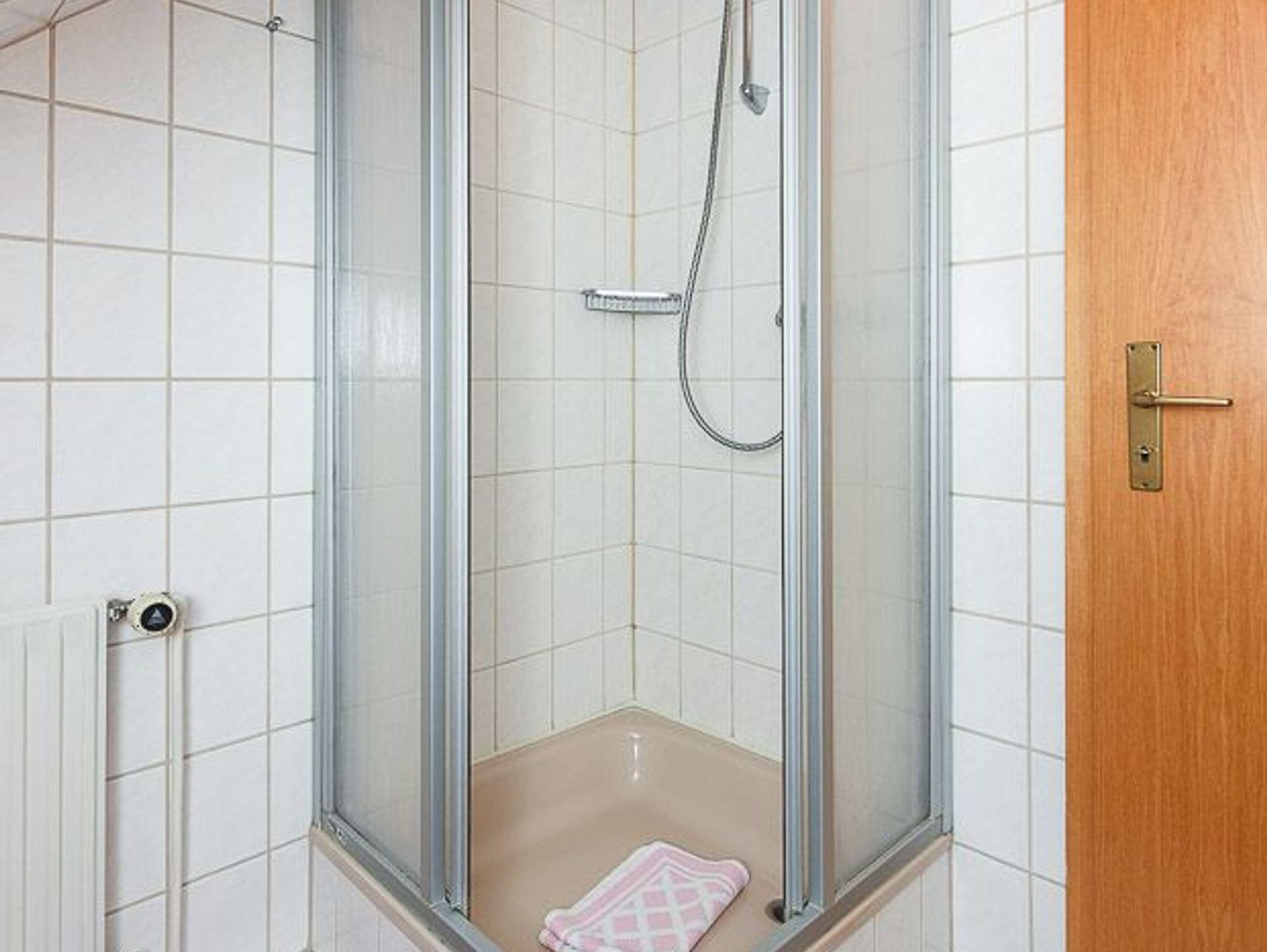 Zimmer, Badezimmer mit Dusche, Waschtisch und WC, Obergeschoss, optimal für 1 bis 2 Personen.