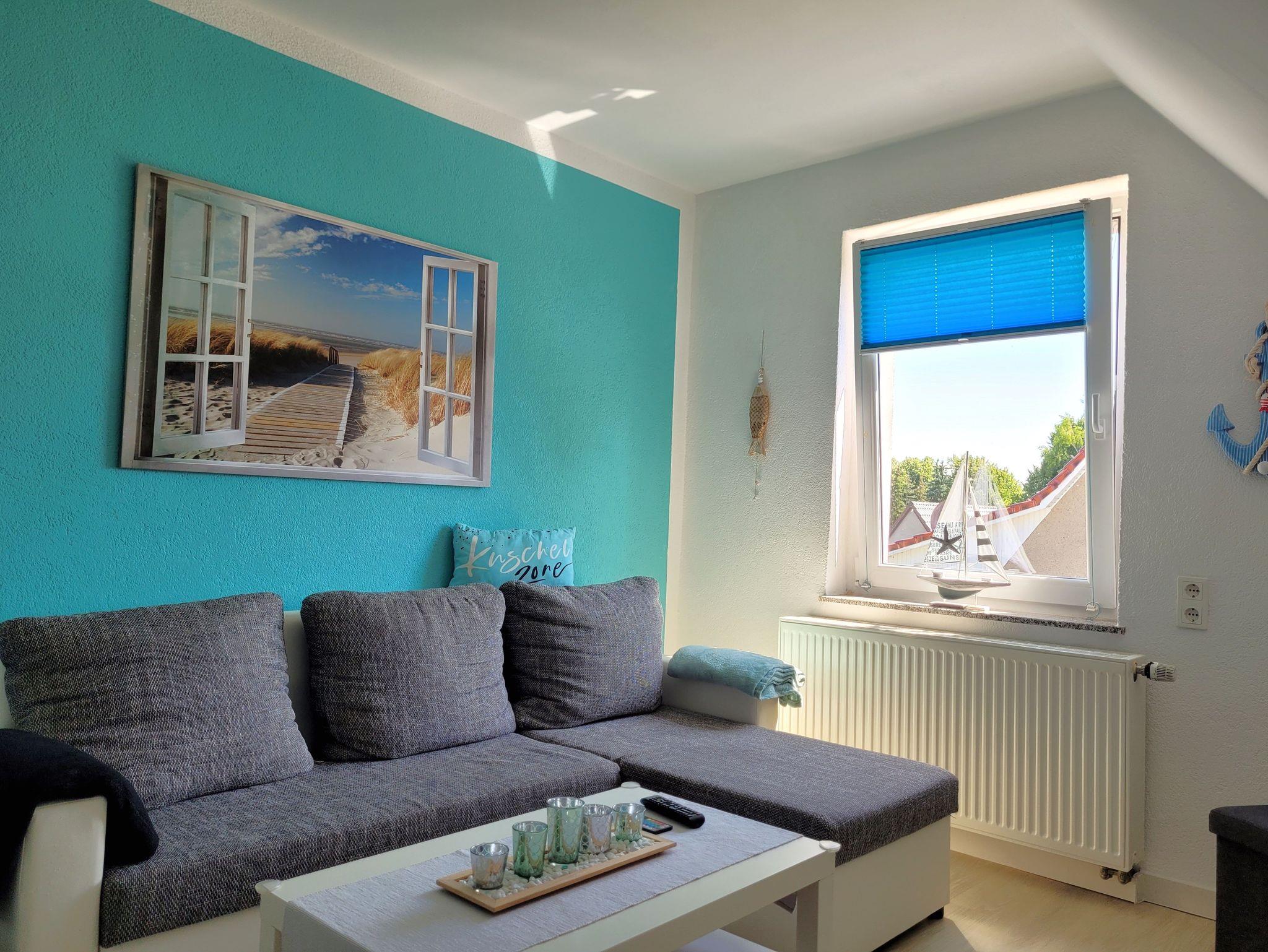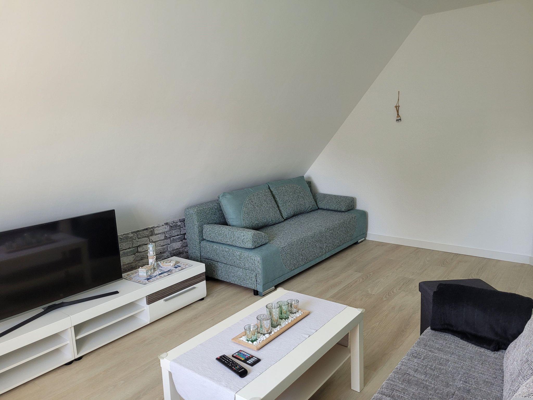 Der helle Wohnbereich lädt mit einem bequemen Schlafsofa (1,40m x 2,00m) zum Entspannen ein ? perfekt für Kinder oder zusätzliche Gäste. Ein Fernseher sowie WLAN sorgen für Unterhaltung.