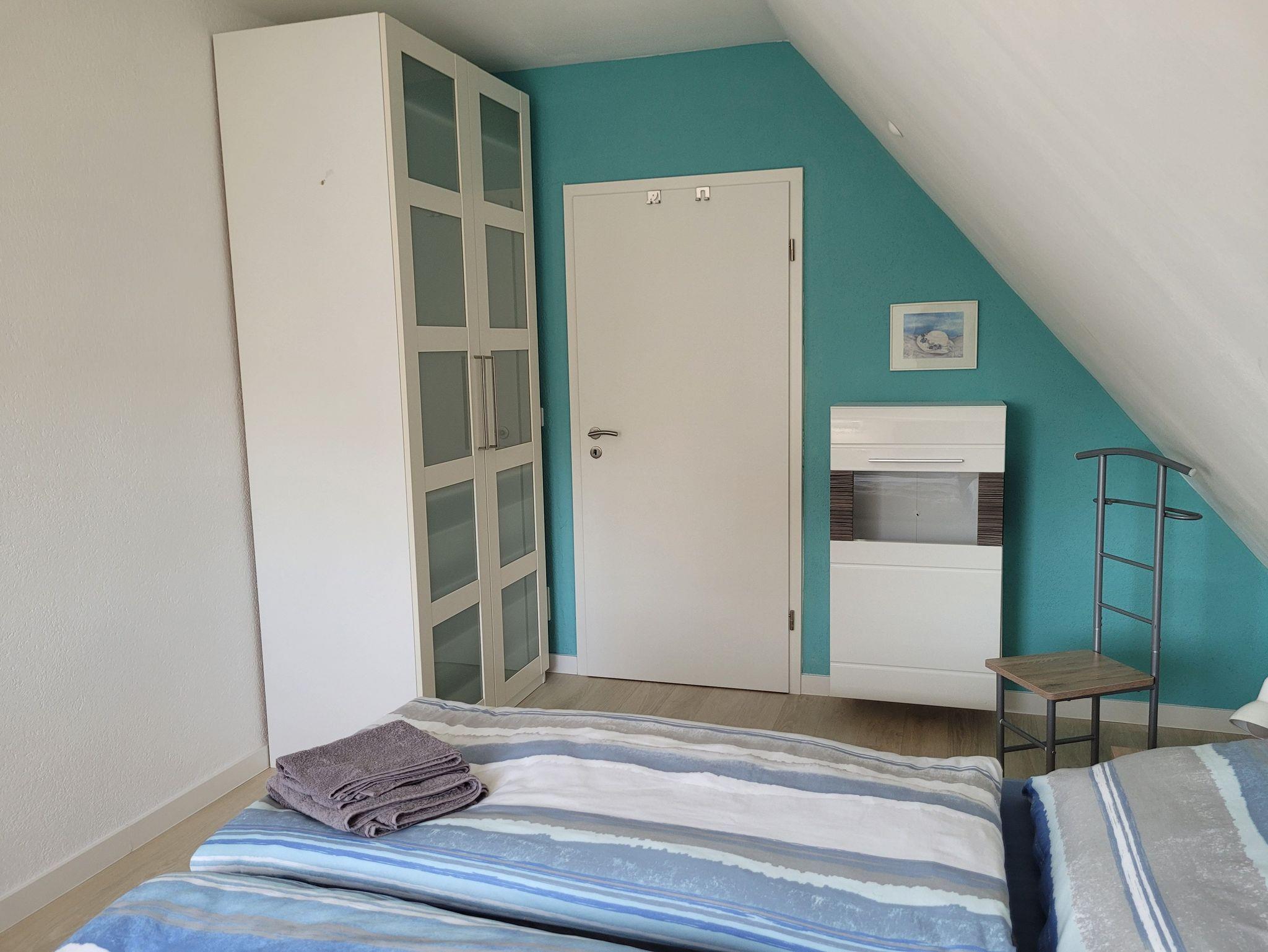 Ein freundlich eingerichtetes Schlafzimmer mit einem komfortablen Doppelbett sorgt für erholsame Nächte. Stauraum für Ihre Kleidung ist selbstverständlich vorhanden.