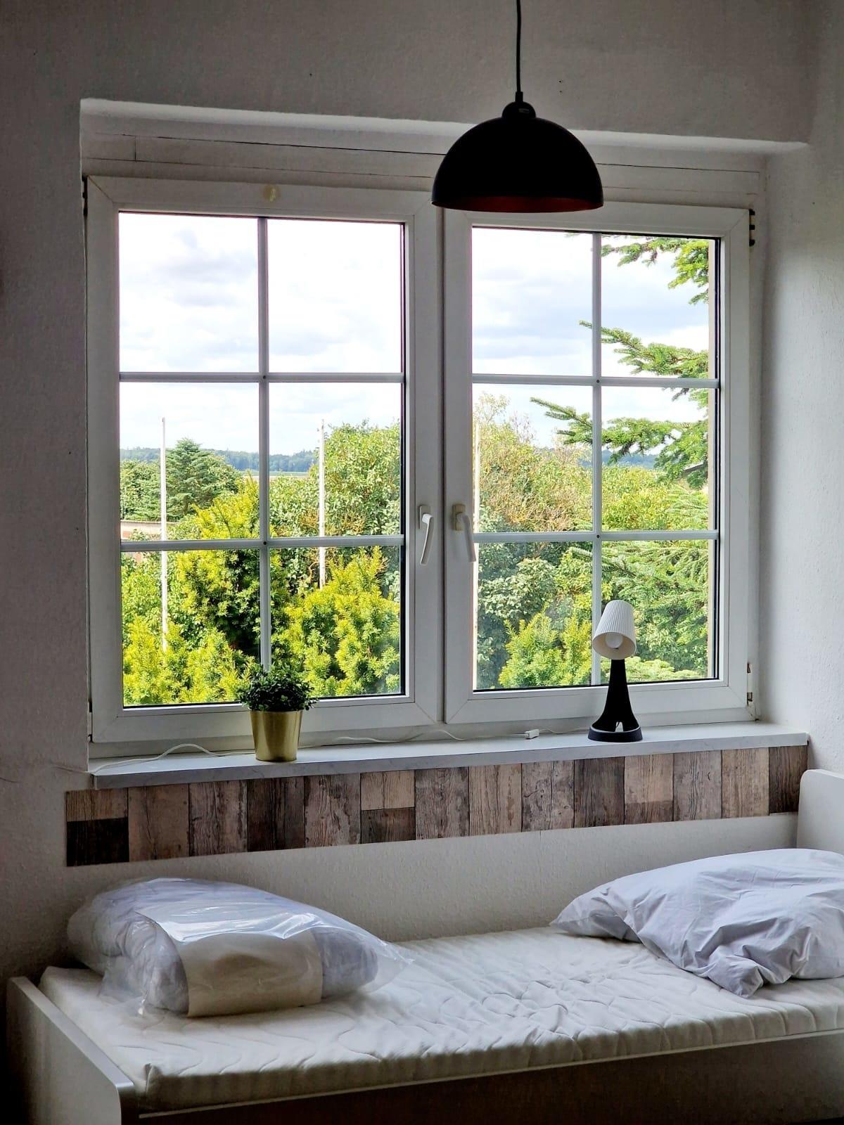 Das neu eingerichtete 2-Zimmer-Apartment im EG des Objektes verfügt über insgesamt vier Einzelbetten (90x200) auf zwei Zimmer verteilt. Ein großer Fernseher rundet das Ambiente im Wohn-/Schlafzimmer ab. Das schöne geräumige Bad verfügt über Dusche und Badewanne. Die separate Küche ist komplett ausgestattet inklusive Herd mit Backofen, Geschirrspüler, Kühlschrank, Wasserkocher, Kaffeemaschine und Sitzgelegenheit. Das Objekt mit dem herrlichen Ausblick, ist nur 1 Minute mit dem Auto von der Abfahrt Friedland i.M. an der Autobahn A20 gelegen. Kostenfreie Parkplätze befinden sich direkt vor der Haustür. Die nächstgrößere Stadt Woldegk ist nur 9 km entfernt. Viele Sehenswürdigkeiten und die naturbelassene Gegend der Mecklenburgischen Seenplatte sind schnell erreichbar. Neubrandenburg erreicht man mit dem Auto nach ca. 20 min Fahrtzeit.