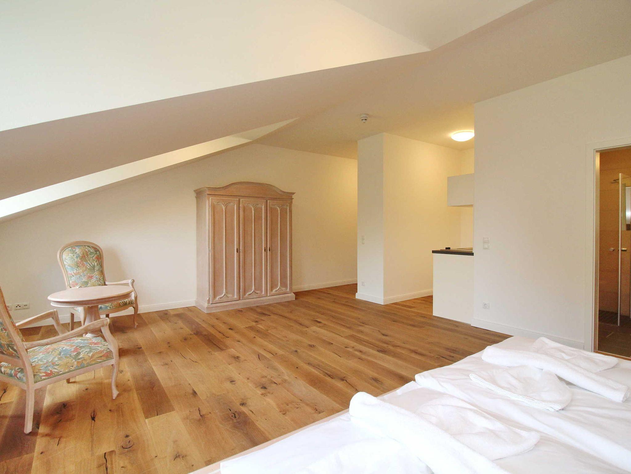 Die Schloss Apartments liegen im 1. Stock oder im Dachgeschoss mit Blick in den vorderen oder hinteren Park. Alle Apartments sind mit dem Aufzug zu erreichen. Sie sind modern-minimal oder klassisch ausgestattet und verfügen über eine moderne Küche mit Nespresso Kapselkaffeemaschine und weiteren Küchenutensilien . Die Apartments sind sehr unterschiedlich geschnitten. Größe der Apartments beträgt zw. ca. 30 bis 47 m².