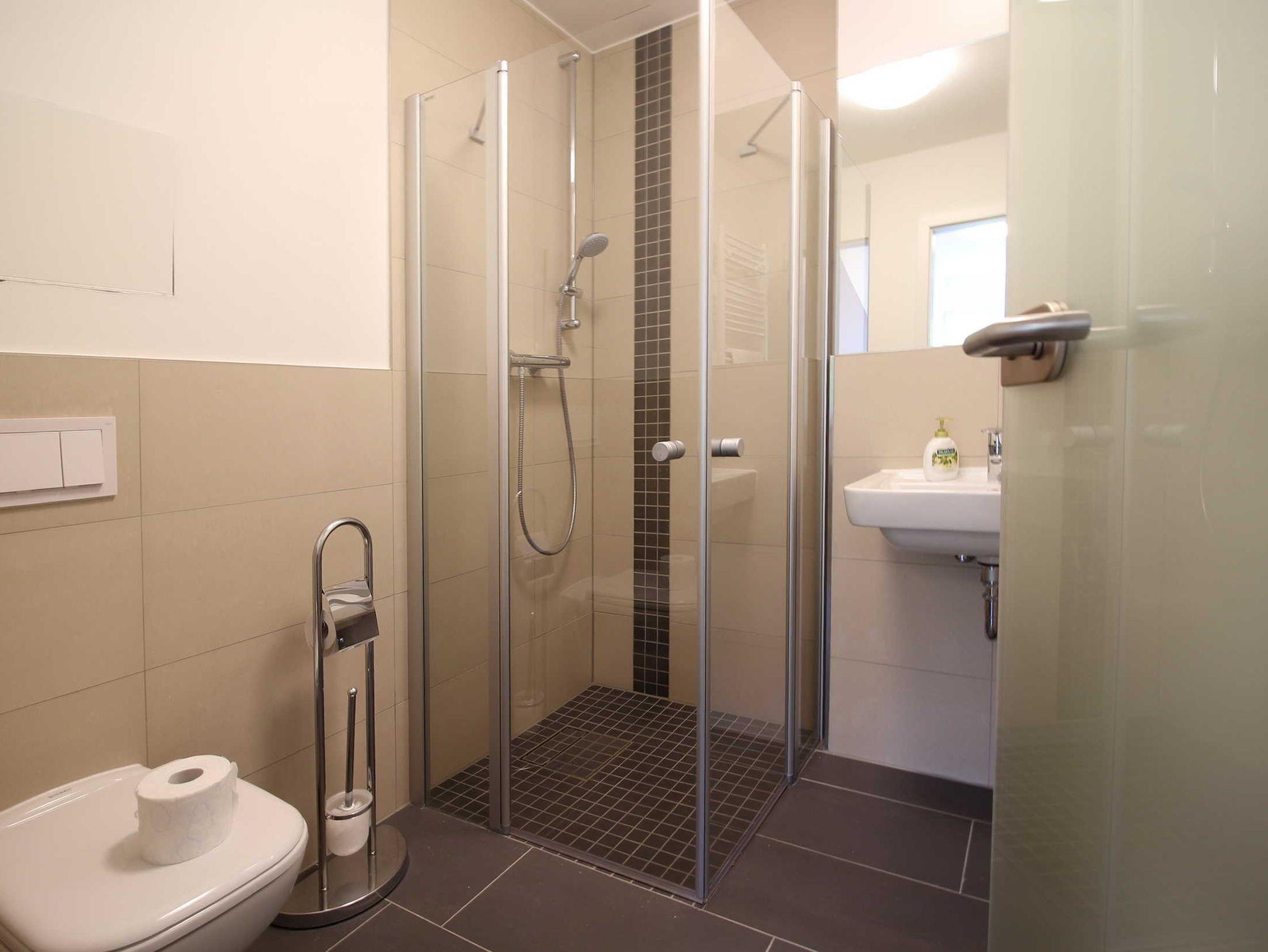 Alle Wohnungen verfügen über moderne Bäder und bodentiefe Duschen. Im Preis ist die Erstausstattung mit Bettwäsche, Handtüchern sowie Geschirrtuch und Spülmittel enthalten.