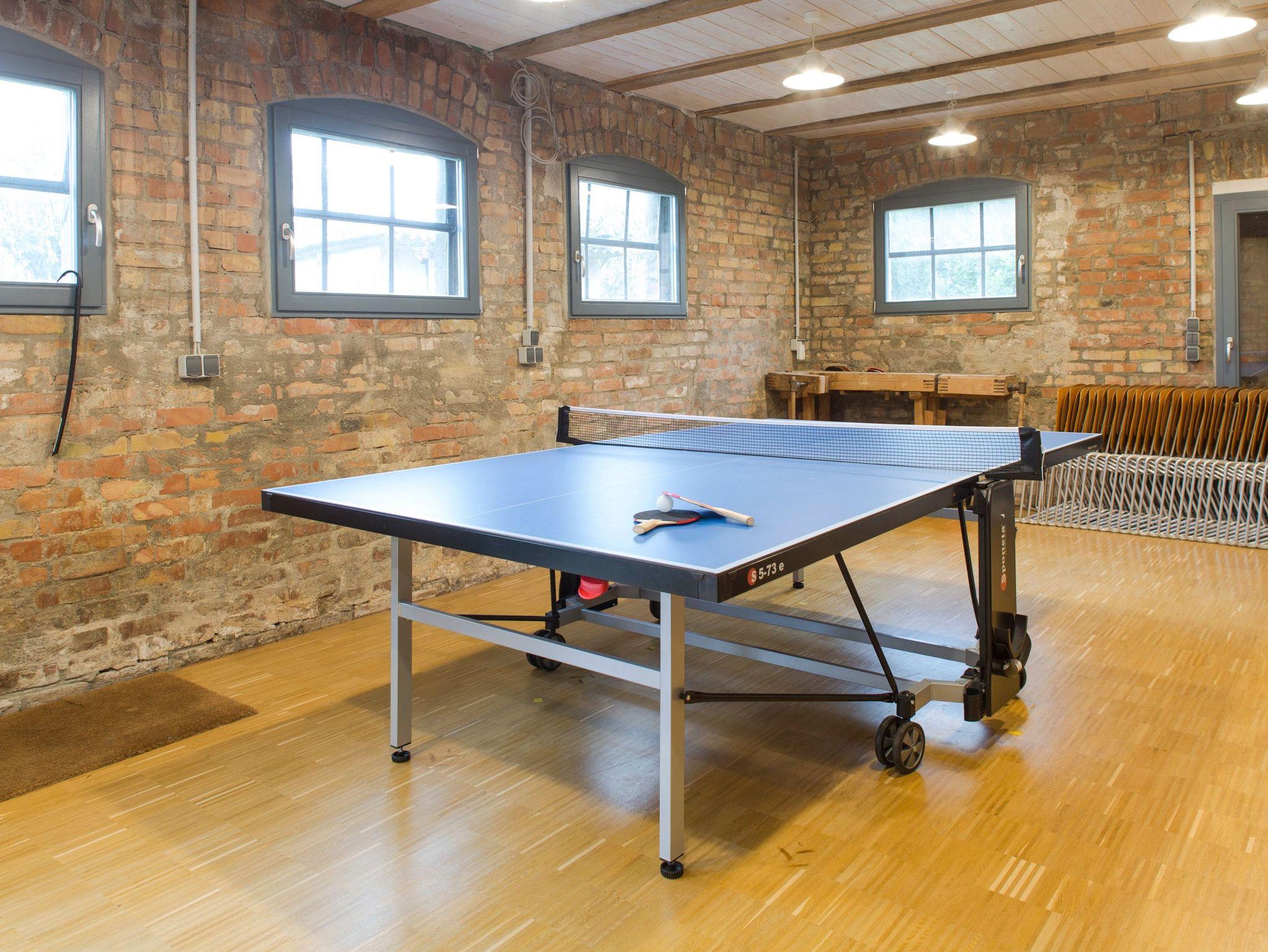 Im großen Gemeinschaftsraum im Erdgeschoss kann die Tischtennisplatte mit genutzt werden und im Schuppen kommen die Fahrräder trocken unter. Eine Waschmaschine und Trockner stehen gegen Gebühr in der Waschküche bereit. Im Außenbereich stehen Parkplatz, Sitzmöglichkeiten und ein Grill zur Verfügung.