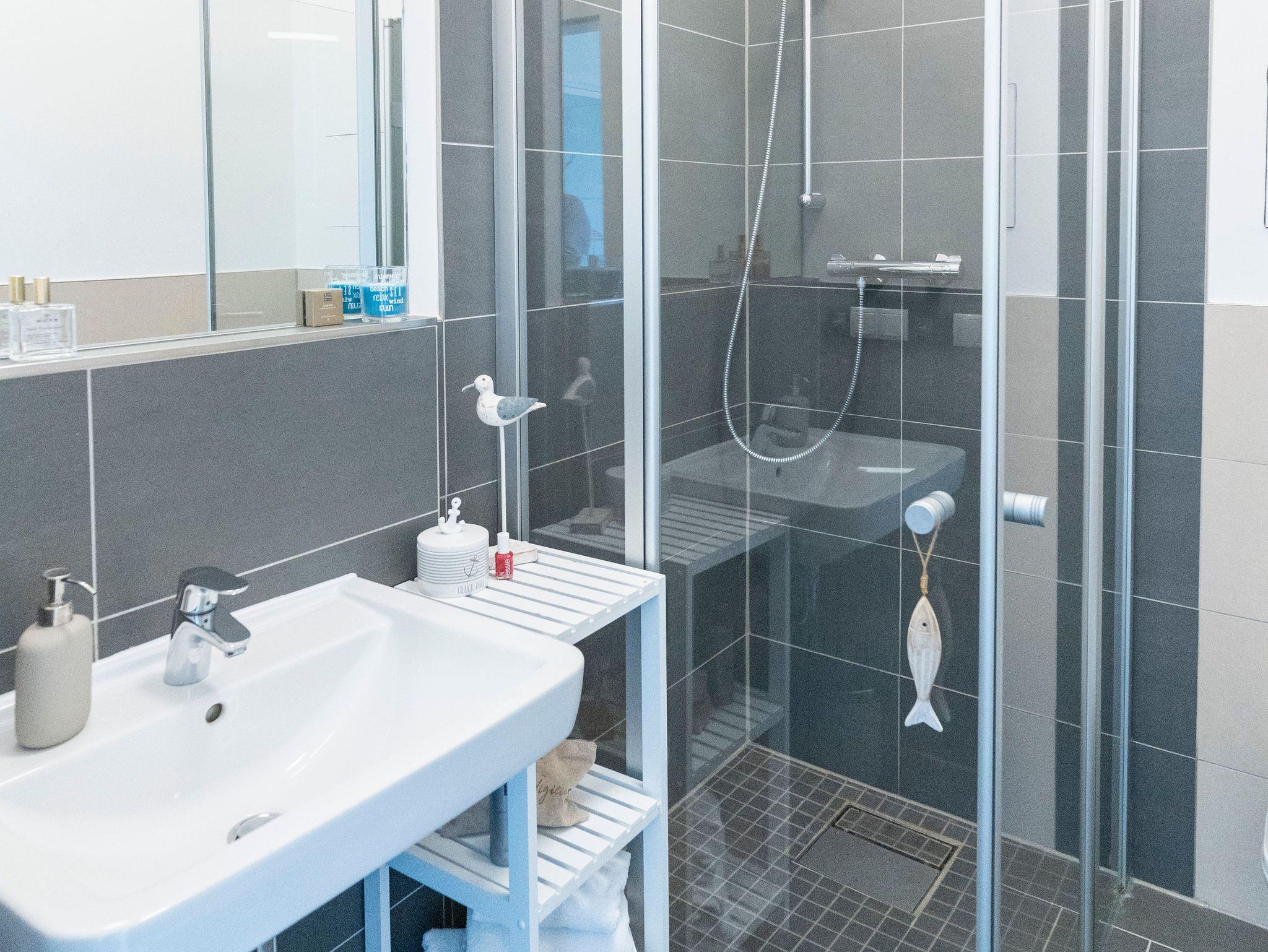 Alle Wohnungen verfügen über moderne Bäder und bodentiefe Duschen. Im Preis ist die Erstausstattung mit Bettwäsche, Handtüchern sowie Geschirrtuch und Spülmittel enthalten.