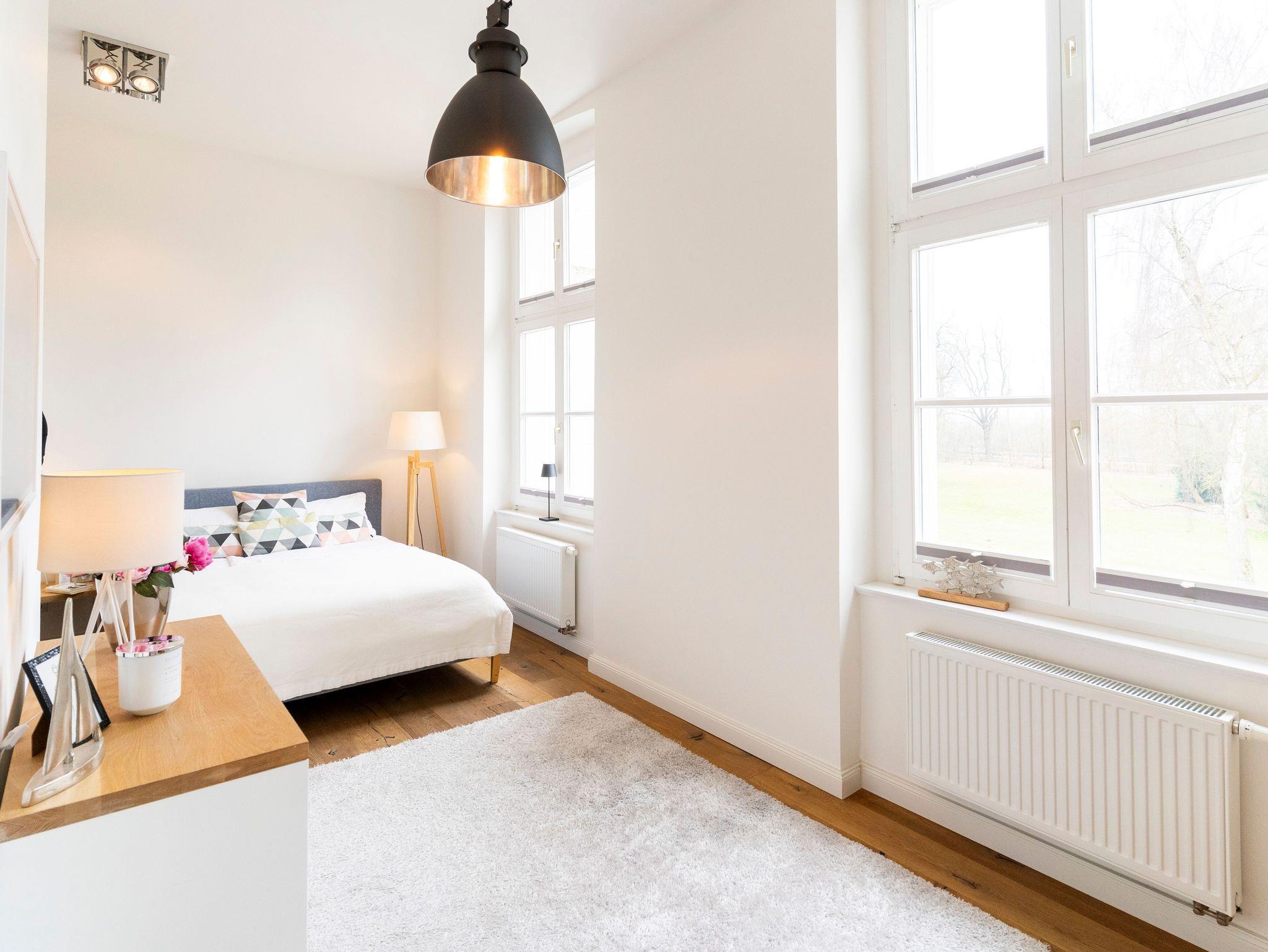 Moderne Junior Schloss Suite im Schloss Hohendorf mit Küche, WLAN und Parkblick für entspannte Ferien.