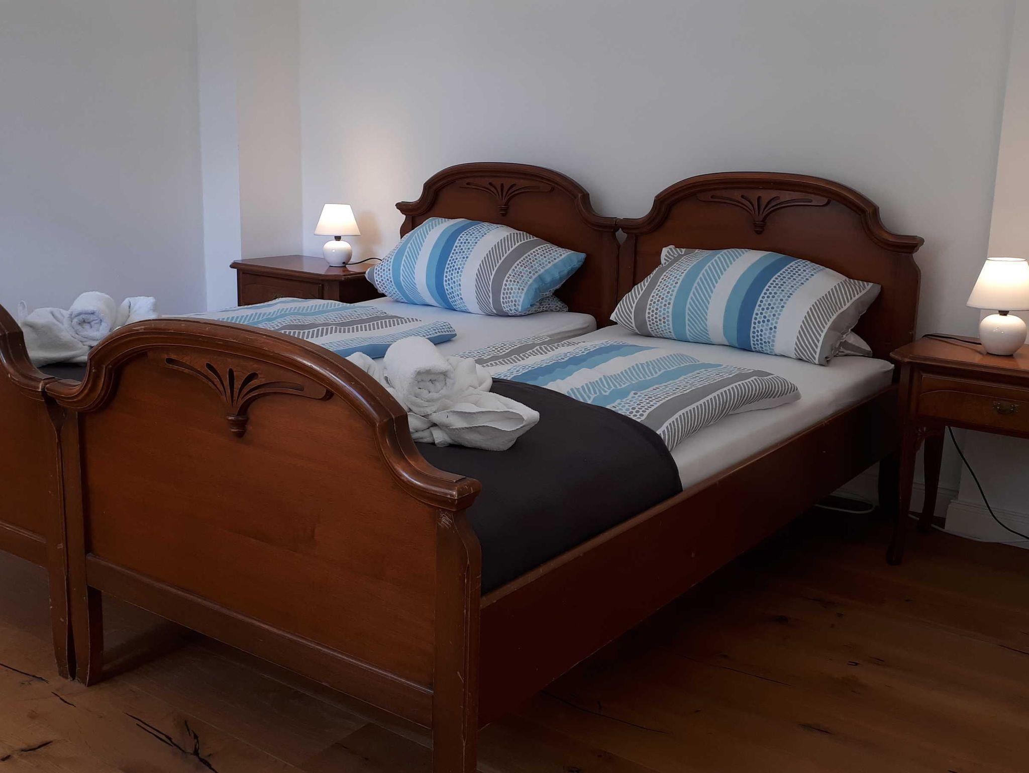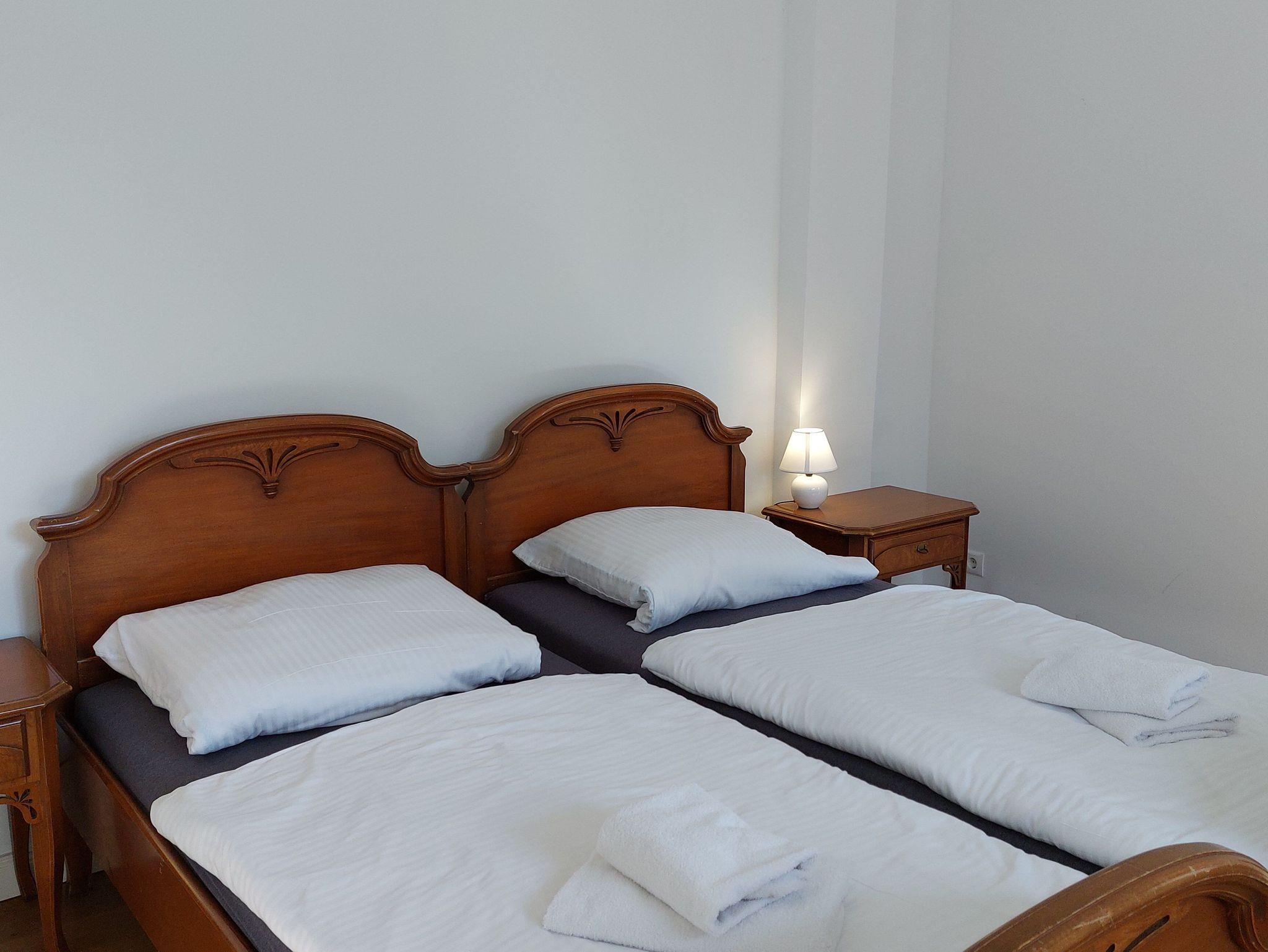 Apartment im Schlafzimmer mit Doppelbett (getrennt stehende Betten/Matratzen).