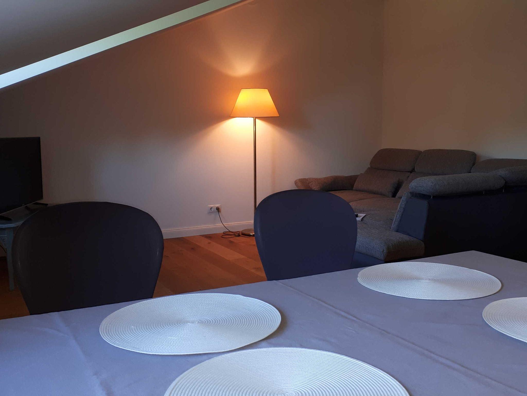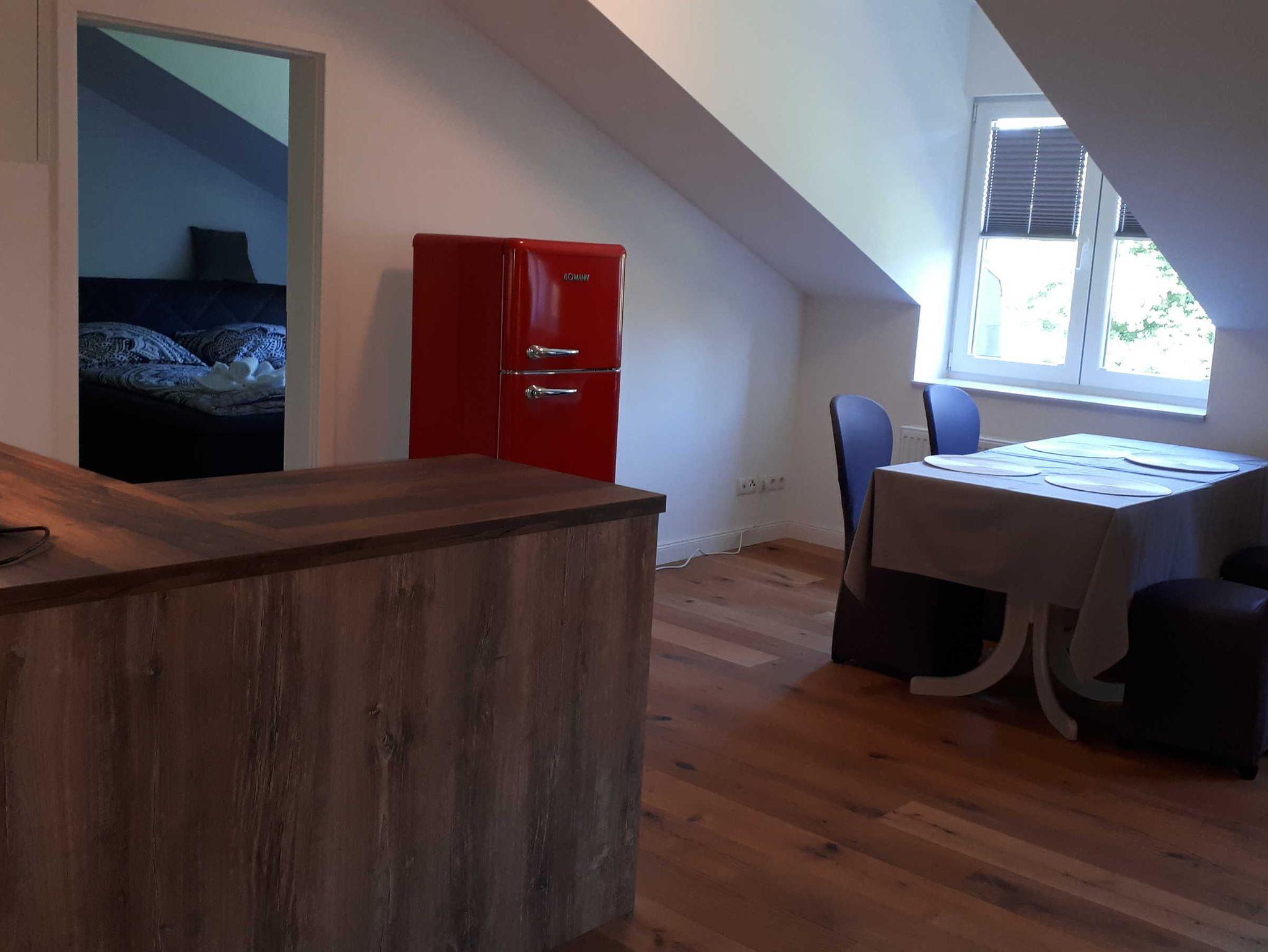 Die Schloss Superior Suite (60 m²) ist ein großzügig geschnittenes, modern eingerichtetes Apartment im Dachgeschoss mit separatem Schlafzimmer und großem Doppelbett (1,80 x 2,00).Das Wohnzimmer ist mit einer großen Schlafcouch (1,60 Meter breit), sowie einer hochwertigen, modernen Küchenzeile inklusive Geschirrspülmaschine, Nespresso Kaffeemaschine und weiteren Küchenutensilien ausgestattet. Die Wohnung verfügt über 2 neue, moderne Bäder mit bodentiefen Duschen.