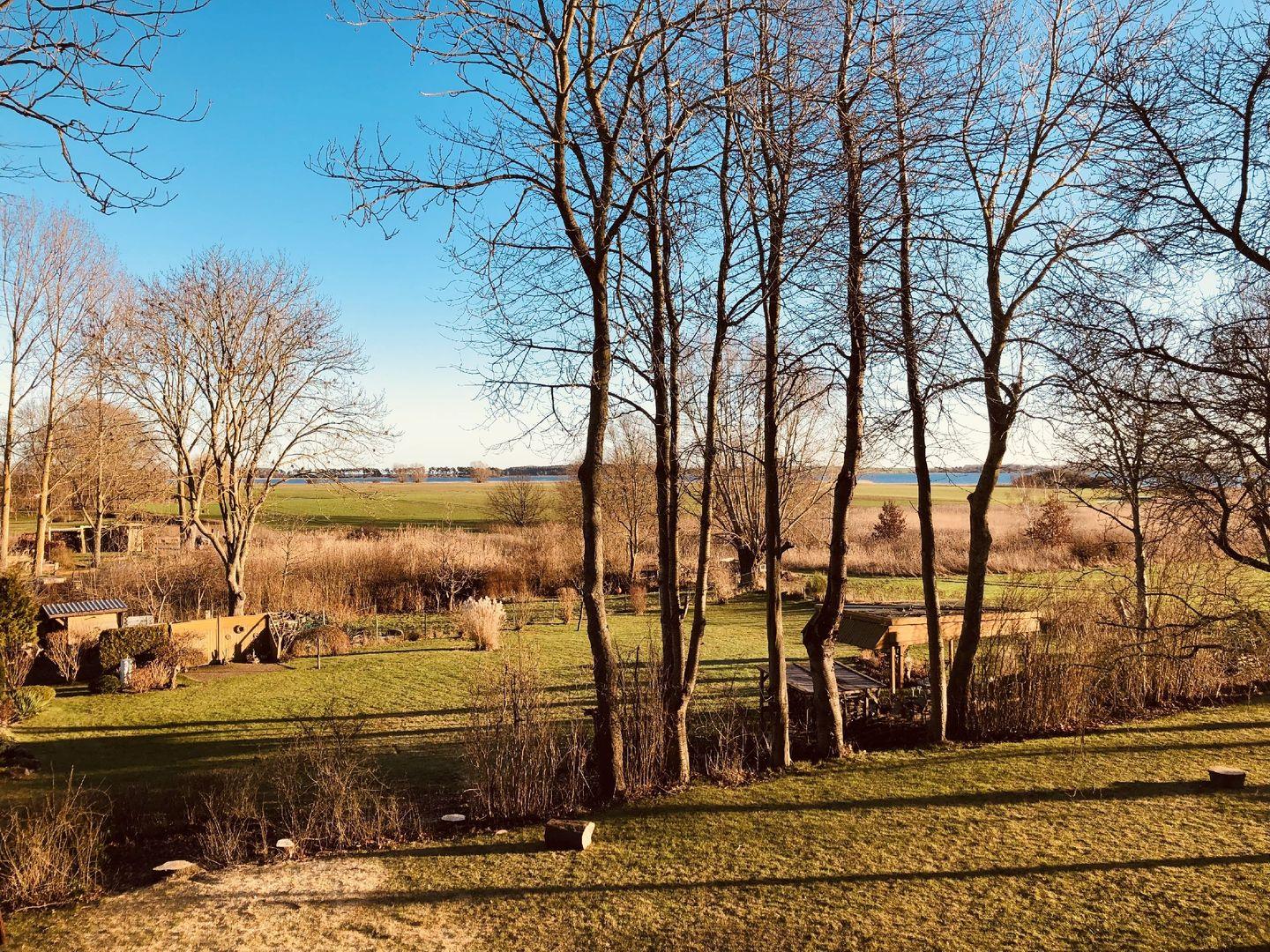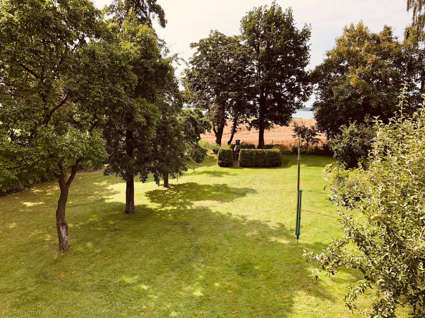 Ein besonderes Highlight ist der große, überdachte Südbalkon. Von hier schweift der Blick über das weitläufige Gartengrundstück bis hin zur Schoritzer Wiek – eine stille Boddenlandschaft, die je nach Tageszeit in sanften Blau- und Goldtönen schimmert. Ein Ort für Kaffee am Morgen, Lesen im Schatten oder laue Abendstunden mit Naturkulisse.