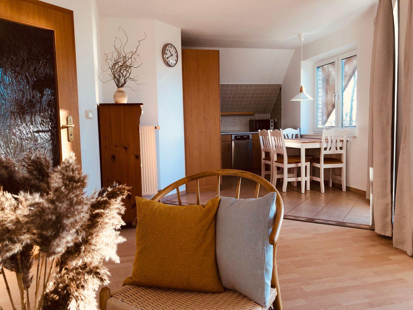 Willkommen in der Ferienwohnung Zur Schoritzer Wiek 10, Ihrem gemütlichen Rückzugsort im ruhigen, historischen Groß Schoritz. Die Wohnung befindet sich im Obergeschoss eines kleinen Wohn- und Ferienhauses und empfängt Sie mit einem sonnigen Wohnbereich, der durch seine Helligkeit und Wärme sofort Wohlgefühl ausstrahlt.