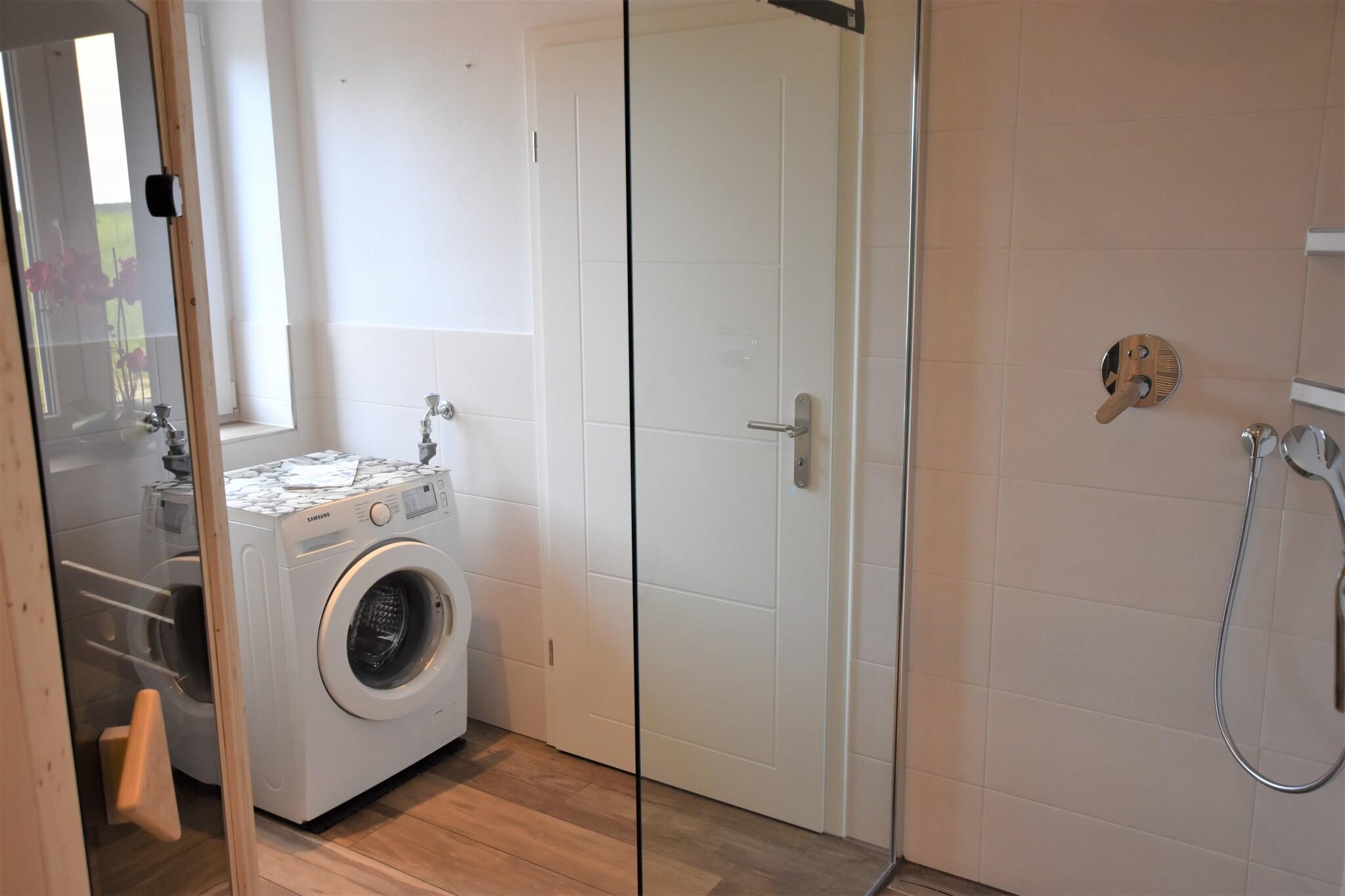 Parterre: (Wohnzimmer(TV(Flatscreen), Kaminofen, Herd(Holz), Sitzecke(6 Personen)), offene Küche(Esstisch(6 Personen), Wasserkocher, Toaster, Kochherd, Kaffeemaschine, Backofen, Mikrowelle, Spülmaschine, Kühlschrank(+ Gefrierfach)), Badezimmer(Dusche, Sauna, Toilette), Badezimmer(Toilette), Hochstuhl) In der 1. Etage: (Schlafzimmer(Doppelbett king size), Schlafzimmer(Doppelbett king size), Schlafzimmer(2x Einzelbett), Badezimmer(Dusche, 2x Waschbecken, Toilette, Waschmaschine), Kinderbett) Heizung, Terrasse(umzäunt), Garten, Fahrradabstellraum, Gartenmöbel, Grill, Parkplatz