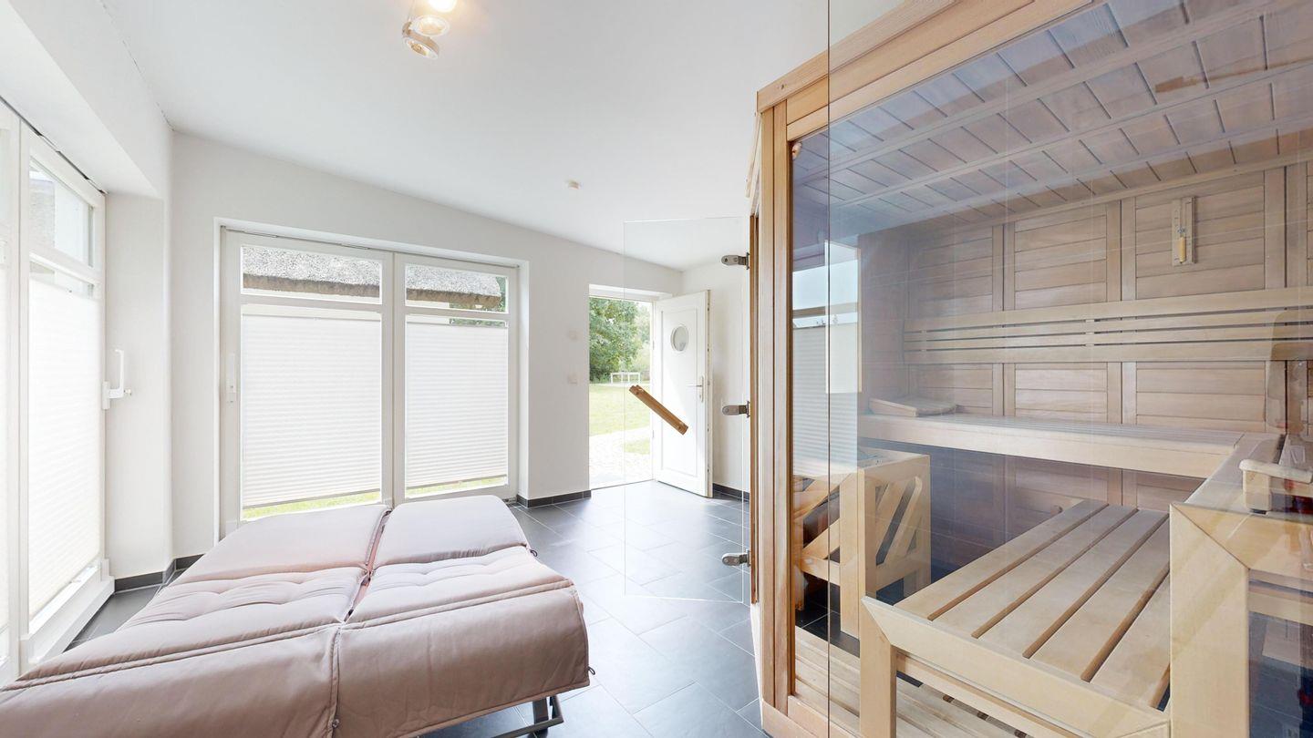 Luxuriöses Ferienhaus in Groß Stresow mit Meerblick, Sauna, Kamin und großem Garten auf Rügen.