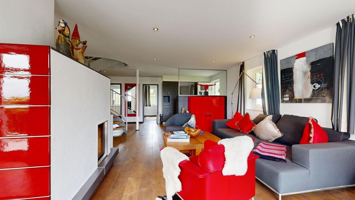 * Großer, heller Wohnbereich (58 m²) mit Couchecke, Sat-TV, Kamin, Esstisch und Küchenbereich (Spülmaschine, Herd, Gefrierkombi, Kaffeemaschine, Toaster, Wasserkocher)