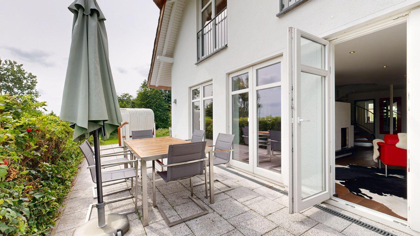 Eines der schönsten Domizile auf Rügen: In ruhiger Lage mit direktem Meerblick, großer Süd-Terrasse mit Strandkorb und einem weitläufigen 2.500 m² Grundstück mit Gartengrill und separatem Saunahäuschen bietet dieses exklusive Haus luxuriöses Wohnen inmitten unberührter Natur.