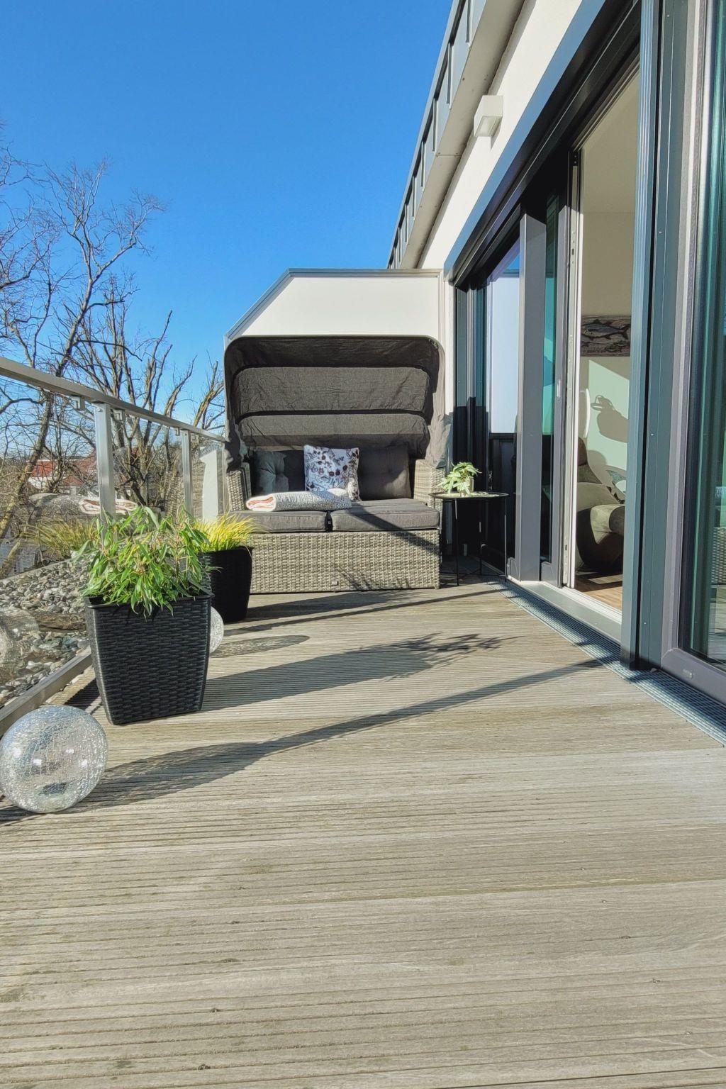 Modernes Apartment mit Balkon, Dachterrasse und Hafenblick in Lauterbach, Rügen.