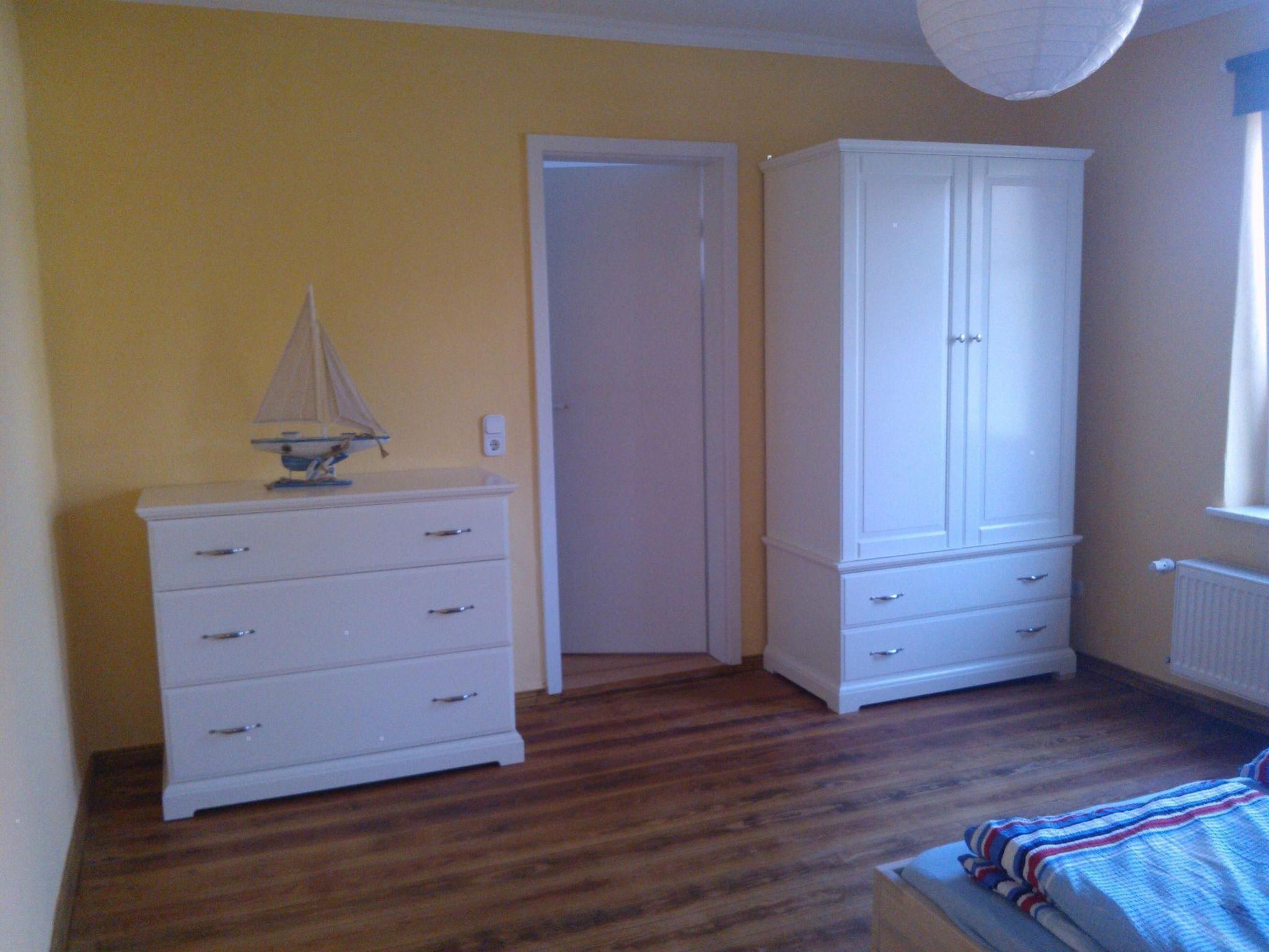 Diese Zweizimmer-Ferienwohnung befindet sich im Erdgeschoss und ist für vier Personen geeignet. Der Wohn- und Schlafbereich mit Couch und Doppelbett ist optisch durch alte Balken getrennt und hat einen alten Dielenboden. Das separate Schlafzimmer hat ein Doppelbett. Weiterhin verfügt die Wohnung über ein Badezimmer mit Dusche und eine vollwertige Küche, unter anderem mit Kaffeemaschine, Herd, Mikrowelle, Spülmaschine und Kühlschrank mit Gefrierfach.
