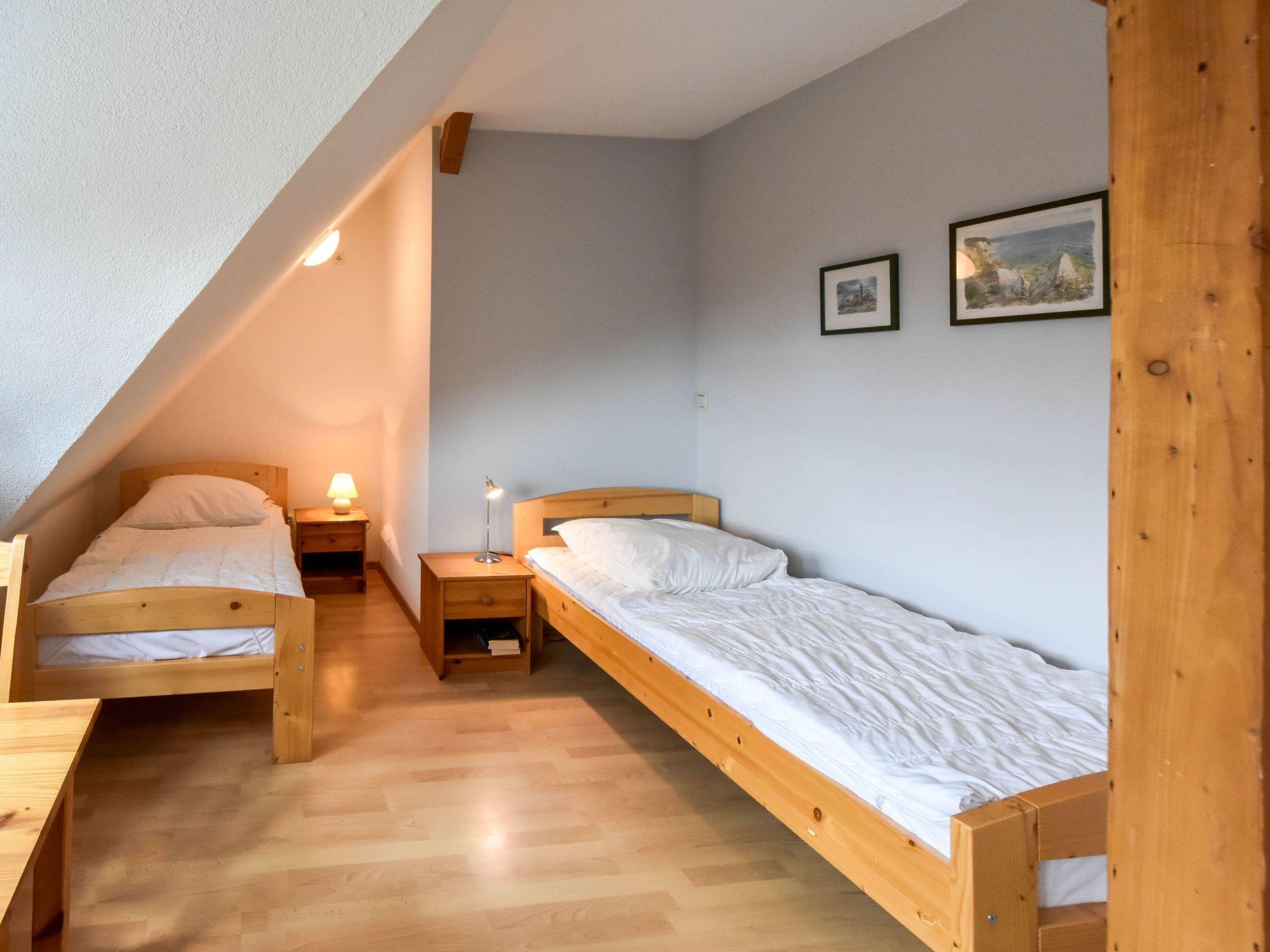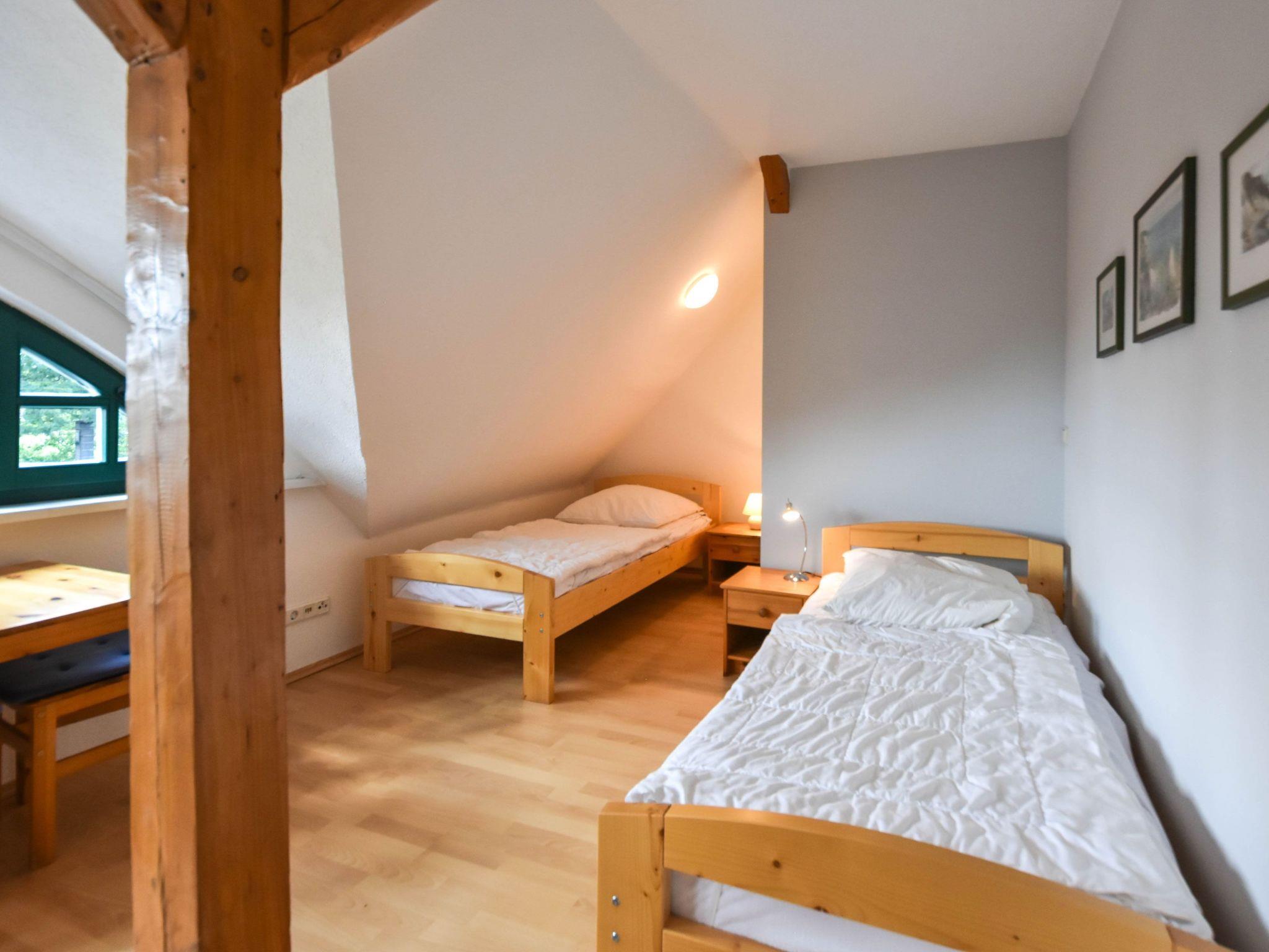 Die Unterkunft befindet sich im 1. Obergeschoss eines Fachwerkhauses auf der linken Seite und verfügt über ein Wohn- und Esszimmer mit Küchenzeile. Im Schlafzimmer 1 finden Sie ein Doppelbett und einen Einbauschrankschrank. Im Schlafzimmer 2 finden Sie zwei Einzelbetten und einen kleinen Tisch mit zwei Stühlen. Das Badezimmer ist mit einer Dusche ausgestattet.