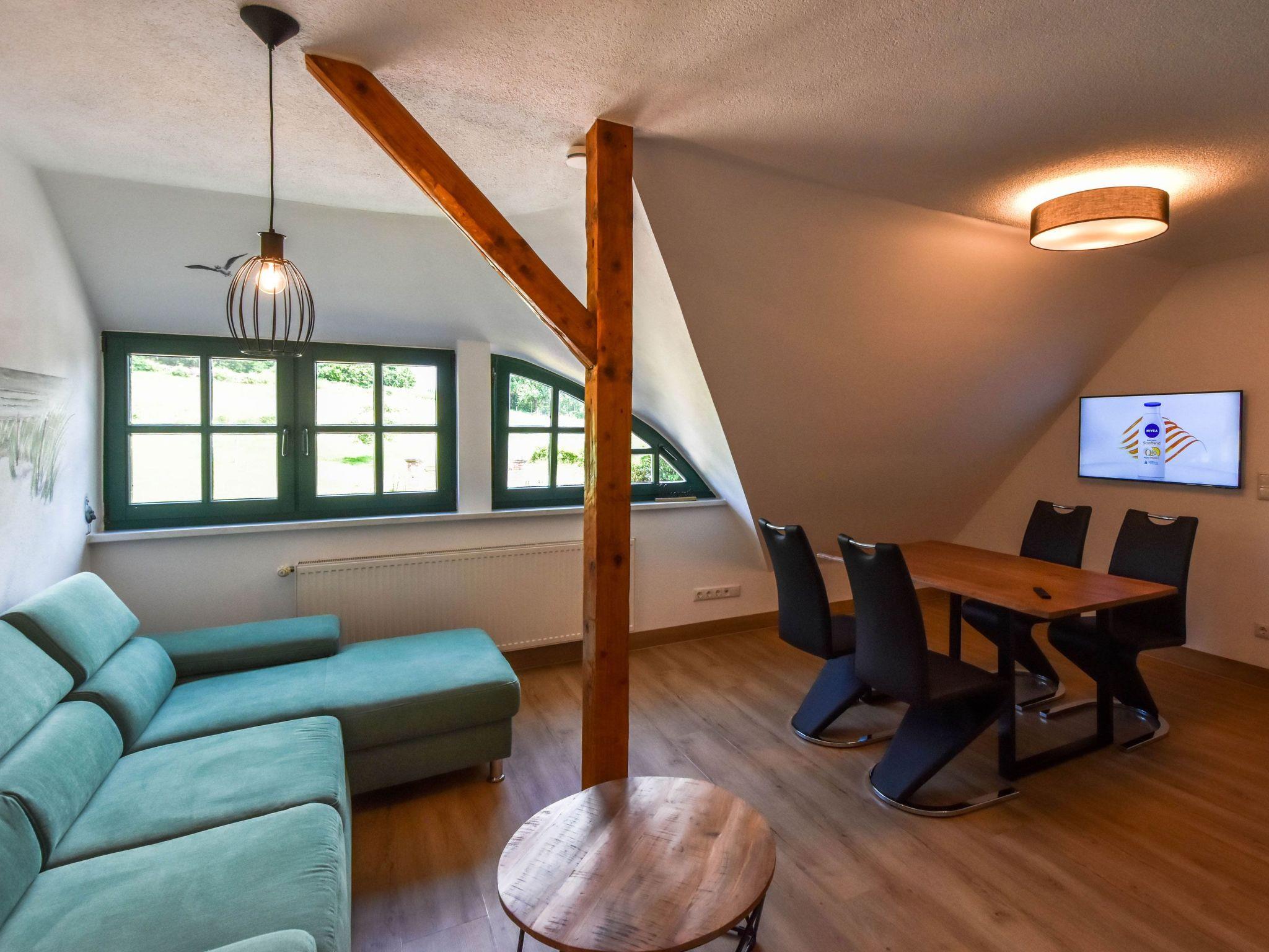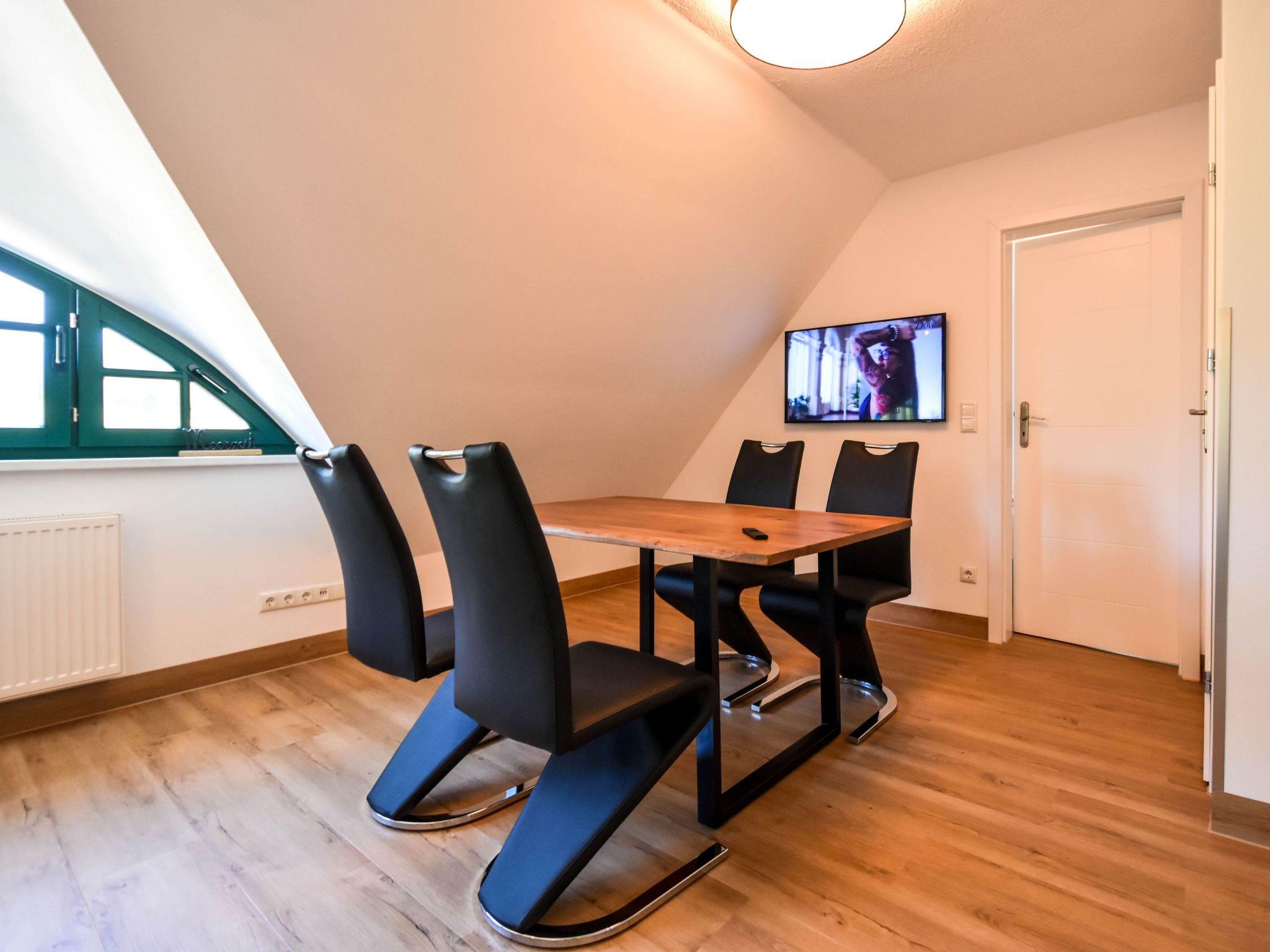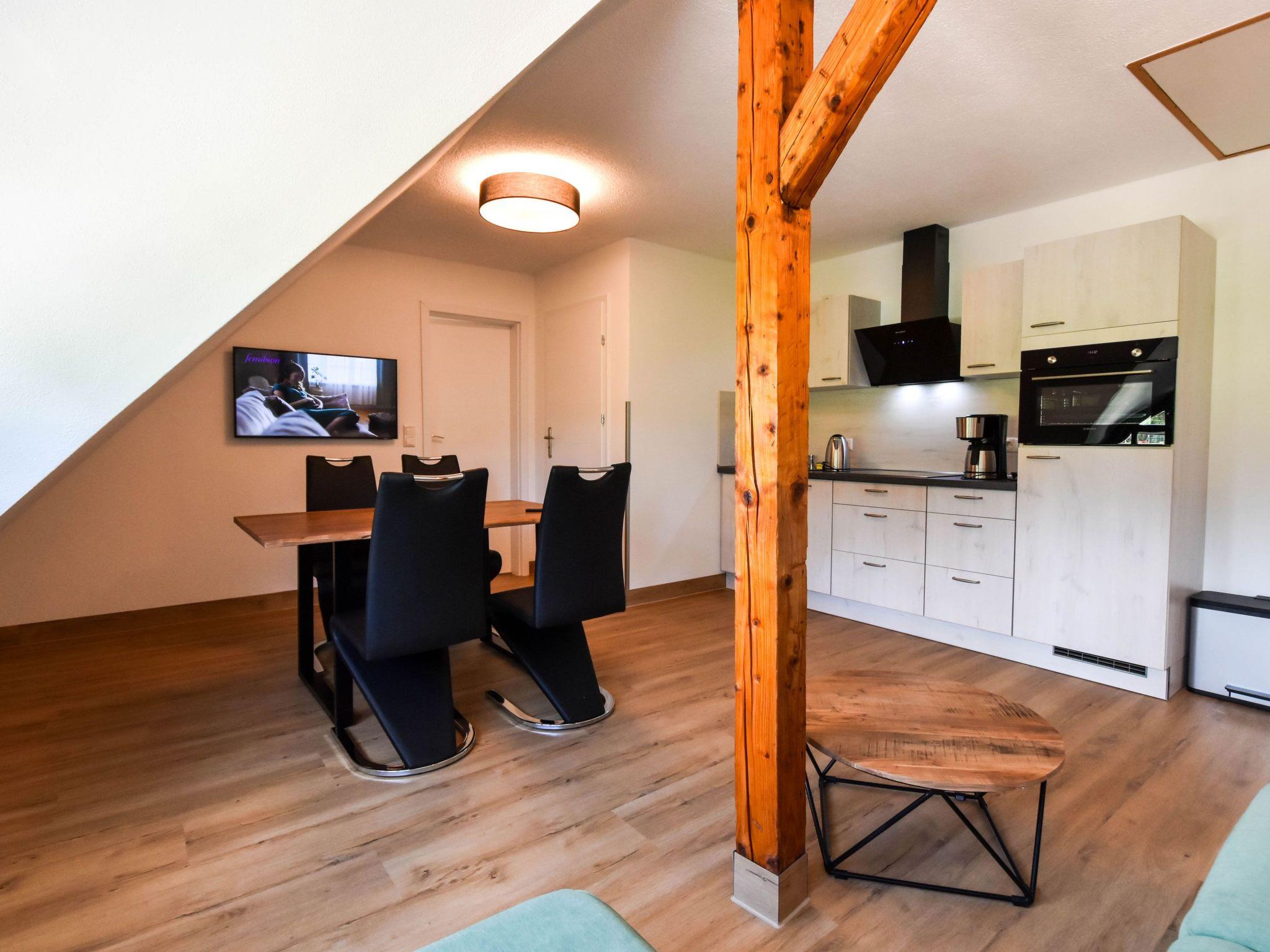 Im 1. Obergeschoss eines ansprechenden Fachwerkhauses gelegen, bietet diese Ferienwohnung alles, was Sie für einen komfortablen Aufenthalt benötigen. Neben einem gemütlichen Wohn- und Essbereich mit Küchenzeile, die für kulinarische Selbstversorger gut ausgestattet ist, finden Sie ein einladendes Schlafzimmer. Ein Boxspringbett verspricht erholsame Nächte, während der Schwebetürenschrank genügend Stauraum für Ihr Gepäck bietet. Das Badezimmer ist funktional mit einer Dusche versehen, um Ihnen einen angenehmen Aufenthalt zu gewährleisten.